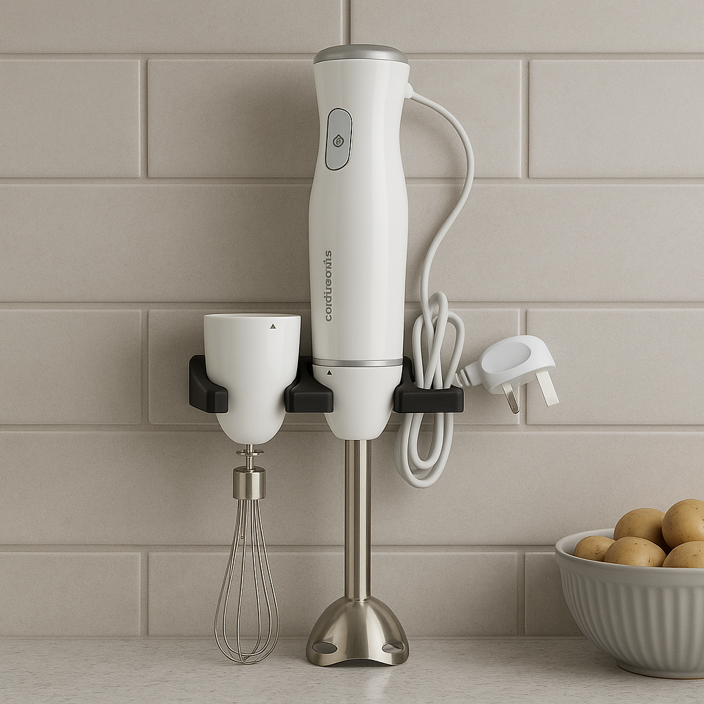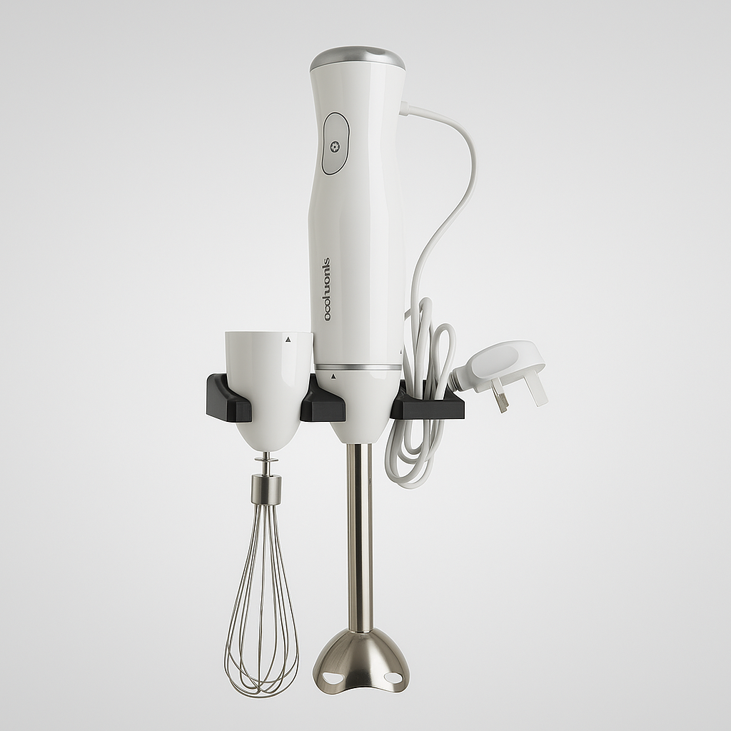 Zoptymalizuj przestrzeń w kuchni i zachowaj porządek dzięki temu sprytnemu uchwytowi ściennemu do blendera ręcznego. Zaprojektowany z myślą o stworzeniu schludnego i funkcjonalnego środowiska, ten montaż pozwala na łatwe przechowywanie blendera ręcznego, jego akcesoriów i kabla w jednym miejscu. Dzięki temu zyskujesz cenną przestrzeń w szafkach i utrzymujesz blaty kuchenne w porządku.