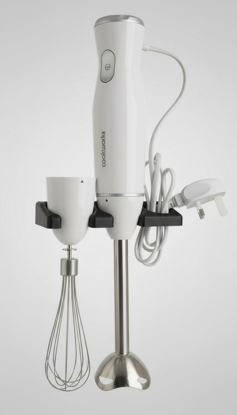 Niezależnie od tego, czy przygotowujesz kremowe zupy, świeże koktajle, czy pyszne sosy, Twój blender ręczny jest zawsze łatwo dostępny. Chociaż uchwyt jest pierwotnie dostosowany do blendera „Cookworks”, jego konstrukcja jest elastyczna i może pasować do szerokiej gamy blenderów ręcznych dostępnych na rynku, co czyni go wszechstronnym rozwiązaniem dla osób poszukujących praktycznych akcesoriów, na przykład do urządzeń Delonghi lub podobnych marek.