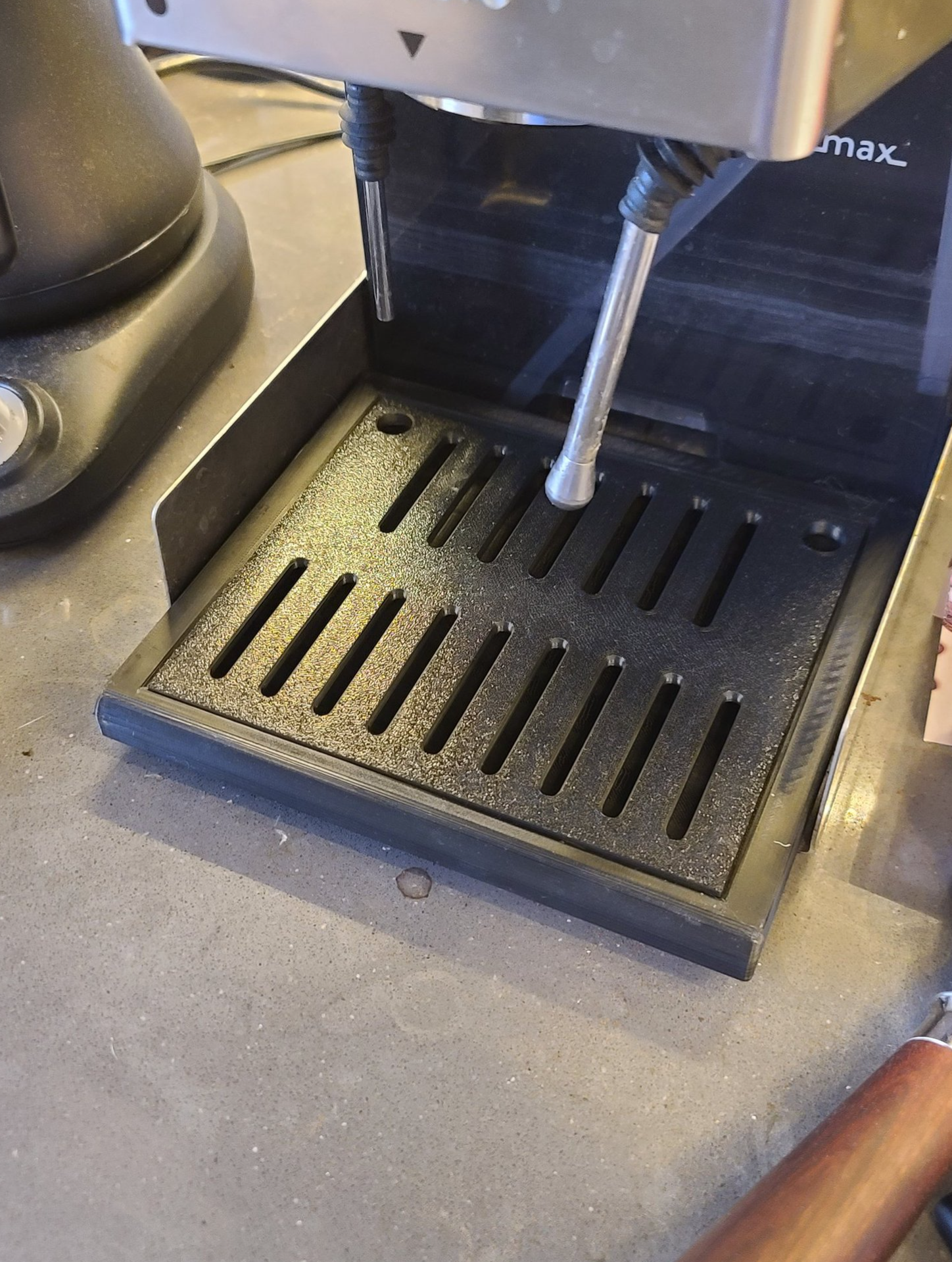 Taca ociekowa Gaggia Classic Long Short można drukować w technologii 3D bez potrzeby stosowania struktur wspierających i jest kompatybilna z materiałami takimi jak PETG, ABS lub ASA, aby zapewnić trwałość i odporność na wysokie temperatury.