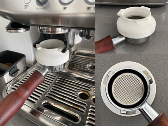 Lejek został opracowany, aby usprawnić proces przygotowywania kawy, tworząc bardziej stabilną platformę podczas mielenia. Pomaga skierować całą zmieloną kawę do koszyka z portafiltrem, skutecznie minimalizując straty i utrzymując czystość w miejscu pracy. Zapewniając, że fusy z kawy lądują dokładnie w koszyku, lejek wspomaga bardziej spójną i równomierną dystrybucję kawy, co jest niezbędne do uzyskania optymalnej ekstrakcji i smacznego espresso.