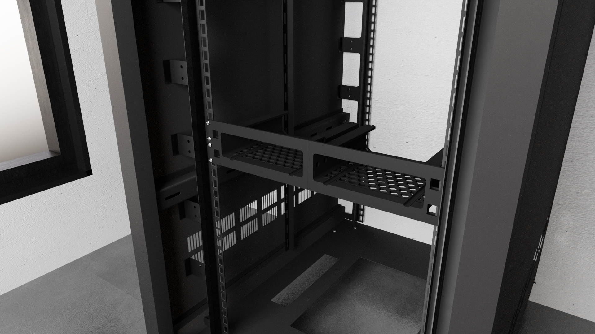 - Zapewnia stabilne i uporządkowane umieszczenie urządzenia w szafach serwerowych lub domowych laboratoriach