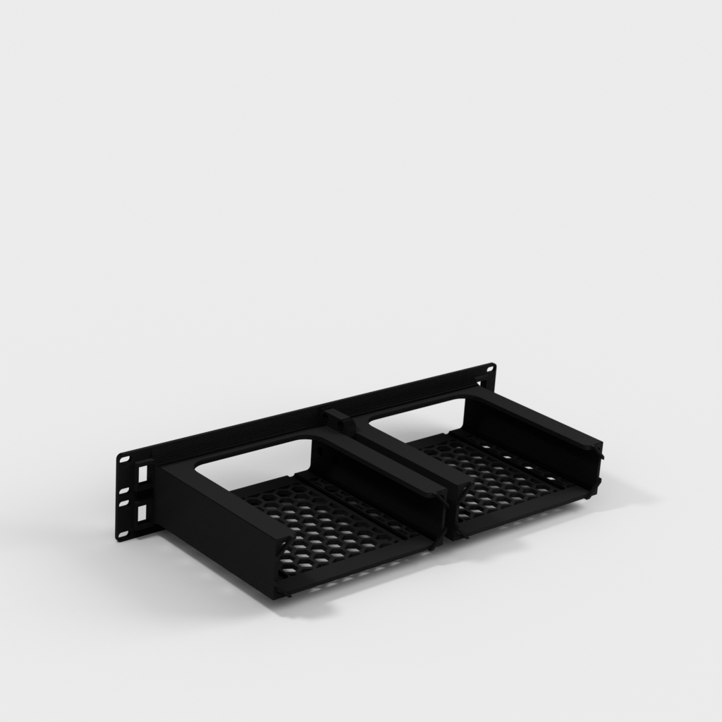 Ten 19-calowy uchwyt do montażu w szafie rack 2U jest przeznaczony do bezpiecznego zamocowania Twojego Minisforum MS-01 w szafie serwerowej. Rozwiązanie to obsługuje różne konfiguracje z miejscem na gumowe nóżki i złącza keystone, co zapewnia uporządkowaną instalację. Jest idealny do domowych laboratoriów (homelabs) i zapewnia stabilne umiejscowienie urządzenia.
