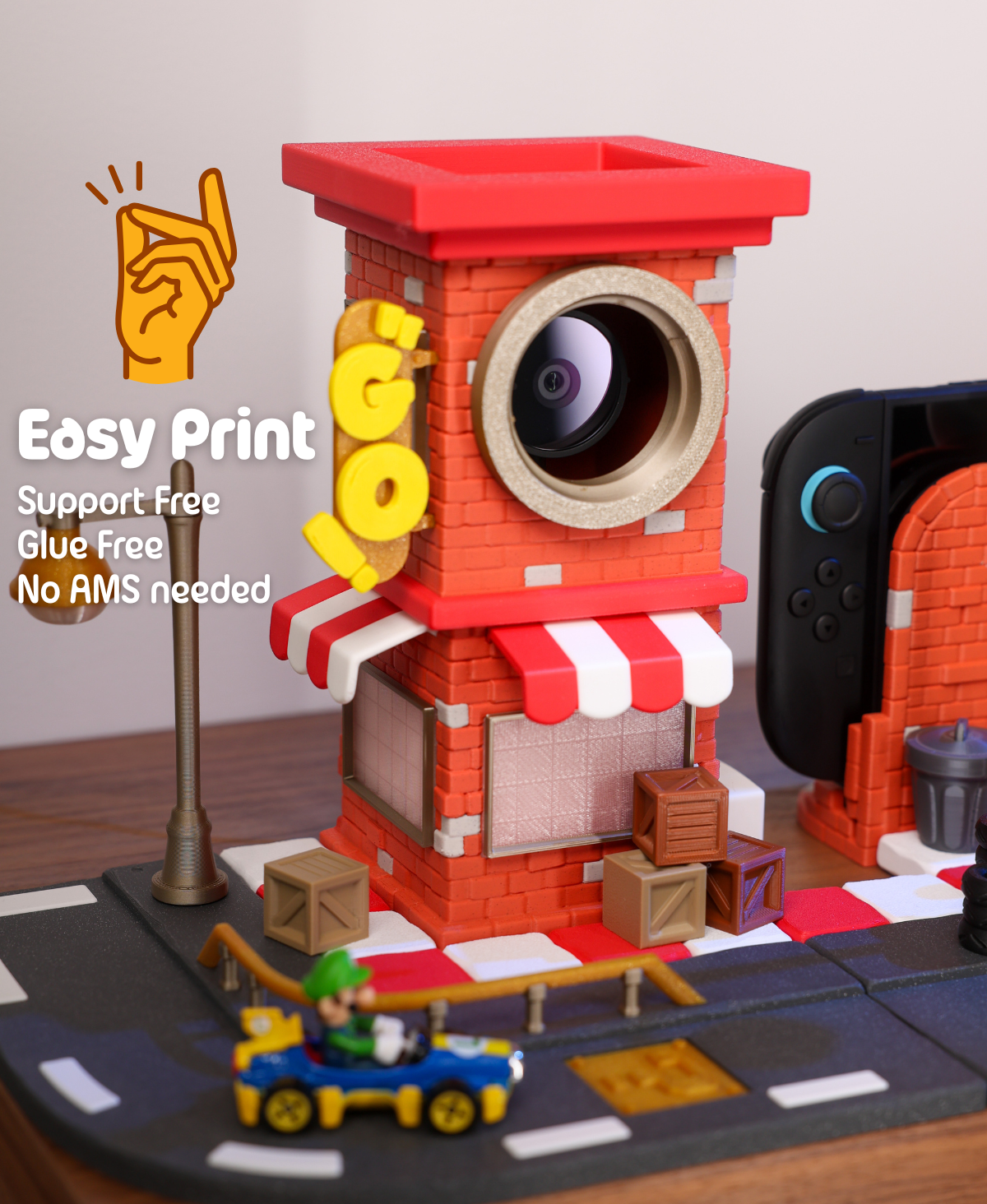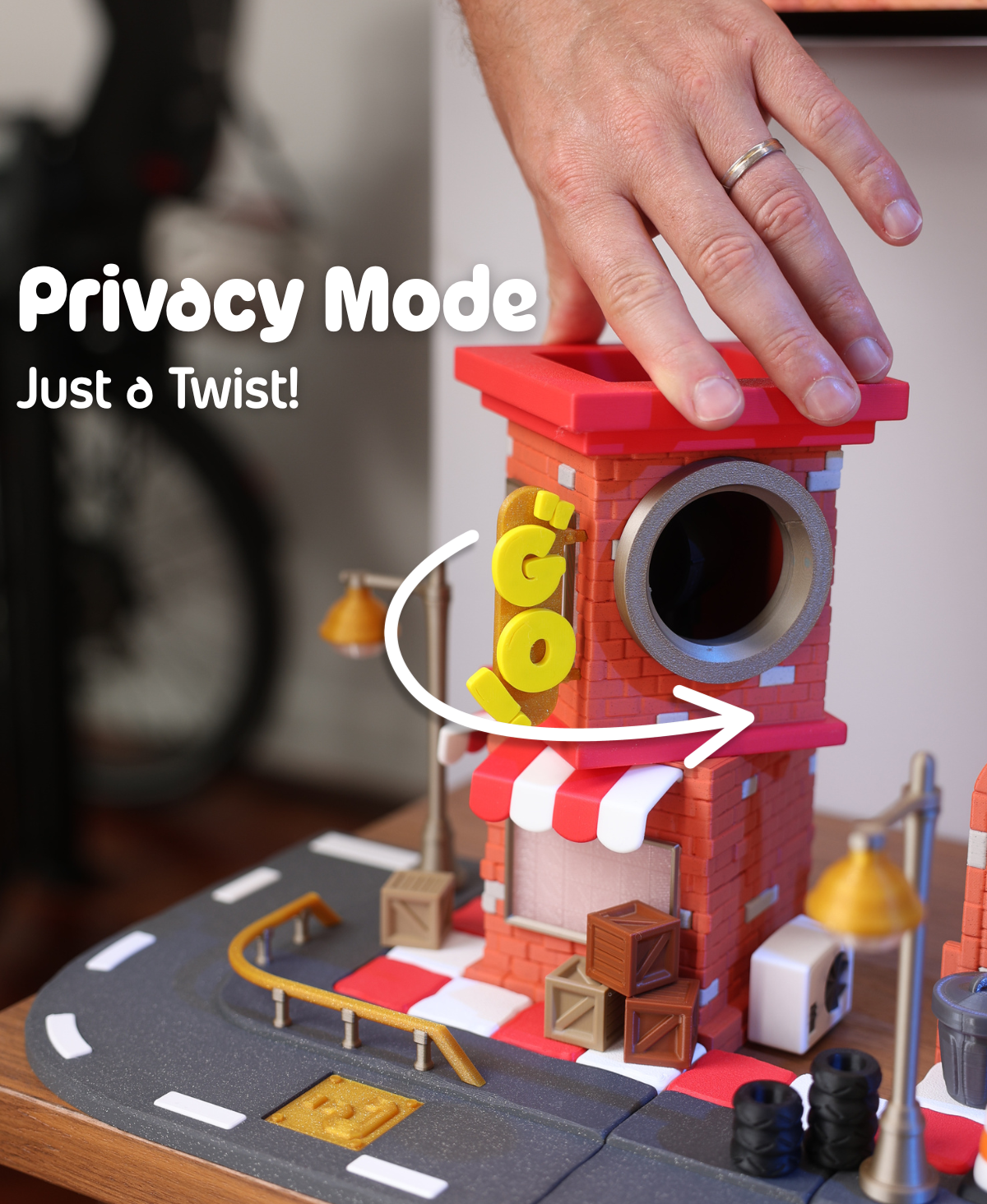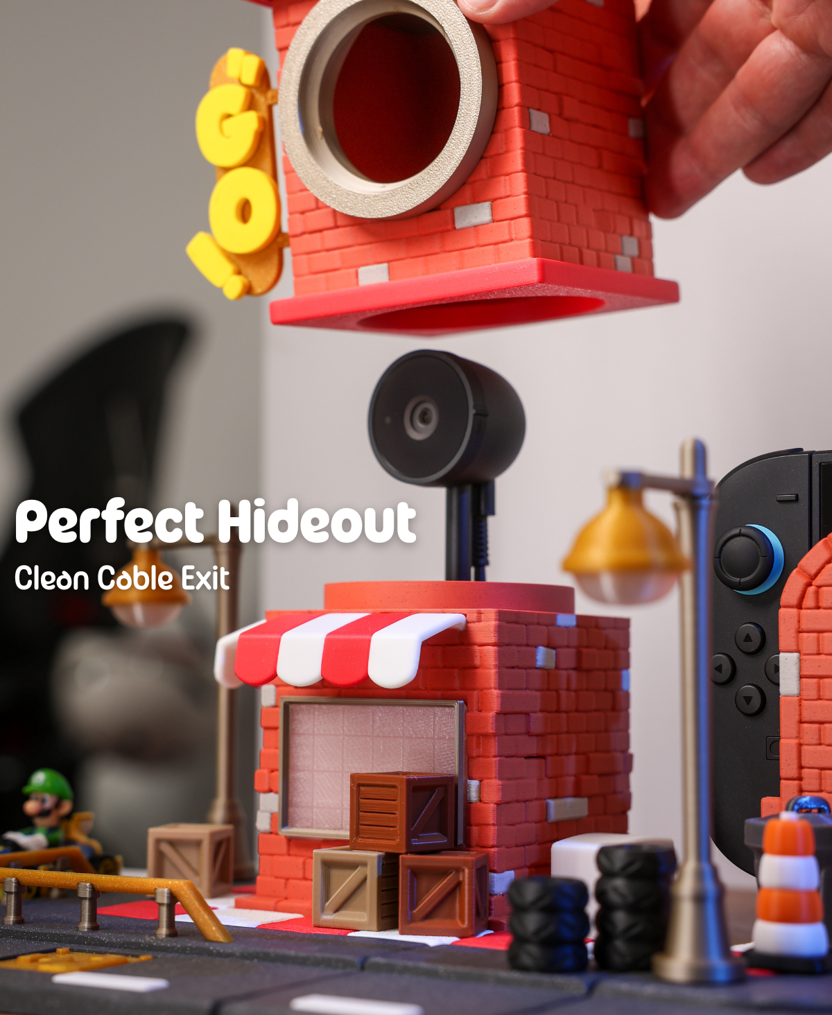 Ten wieżyczka kamery, część kolekcji Turbo District, zabezpiecza Twoją kamerę Nintendo Switch 2. Możesz łatwo aktywować funkcję prywatności, obracając drugie piętro wieżyczki i ukrywając kamerę. Posiada dyskretne zarządzanie kablami i górny podest, który idealnie nadaje się do prezentacji figurki amiibo w Twoim kąciku do gier.