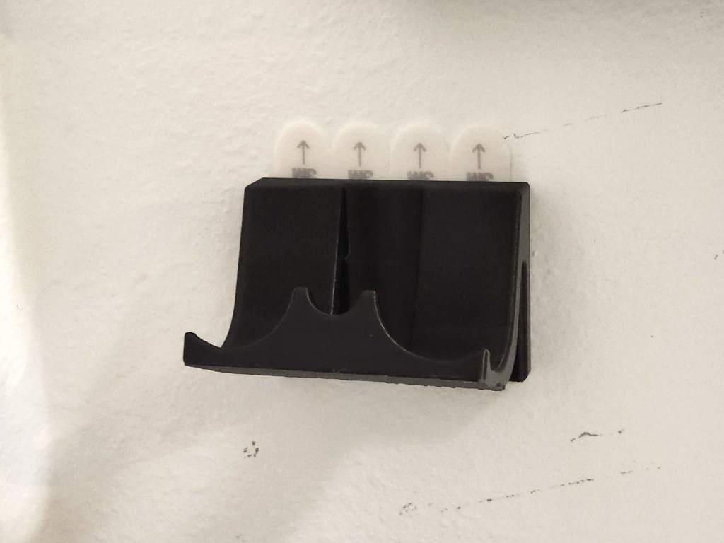- Łatwy do zamontowania na ścianie (pasuje np. do pasków samoprzylepnych lub małych śrubek).