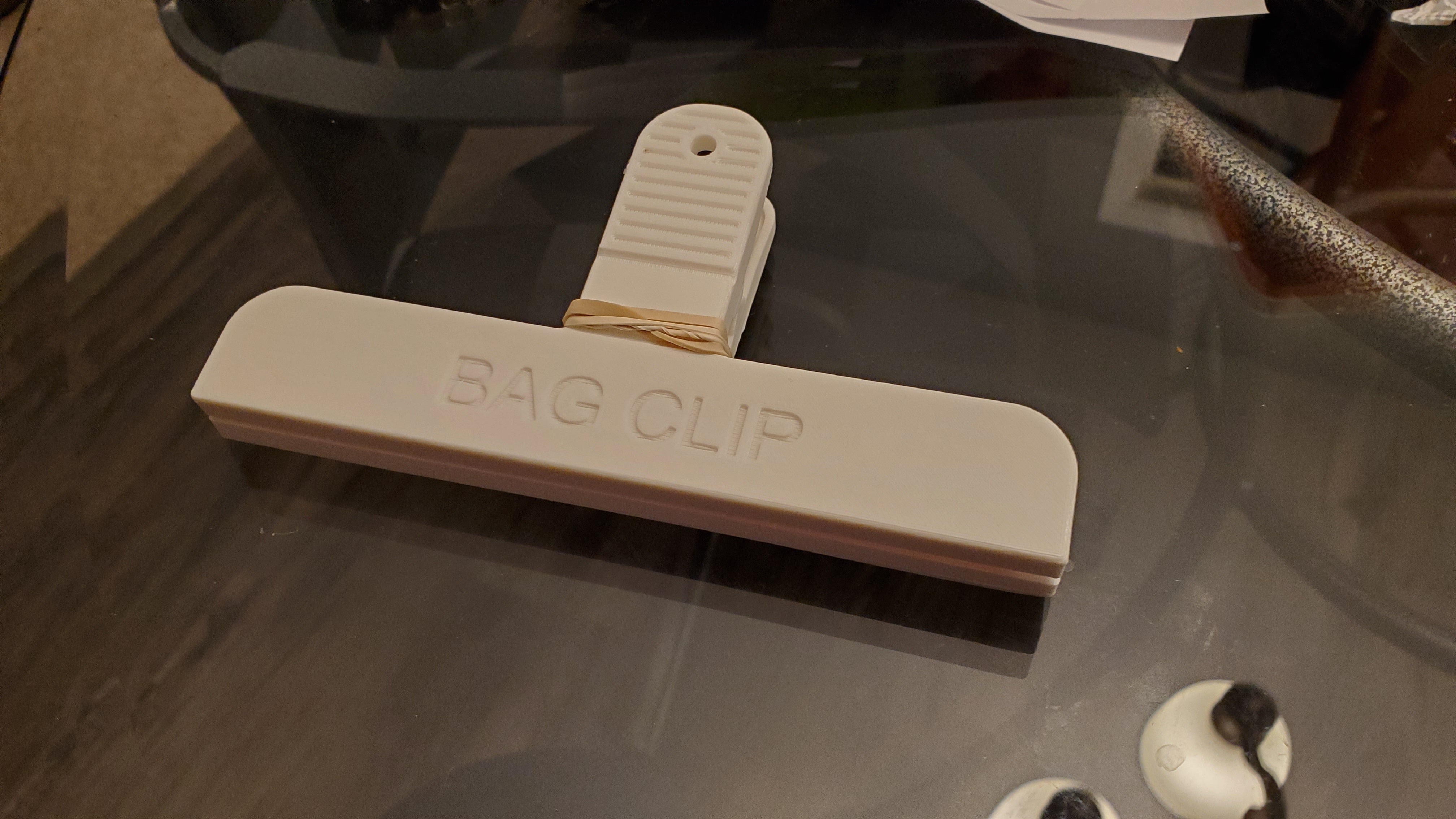 Jest to klips do toreb zaprojektowany tak, aby torby były zamknięte, a ich zawartość świeża. Klips jest zaprojektowany symetrycznie, więc wystarczy wydrukować dwie części, aby pasowały do siebie. Jeśli nie masz sprężyny, możesz po prostu owinąć gumkę wokół rowka, aby wybrać napięcie.