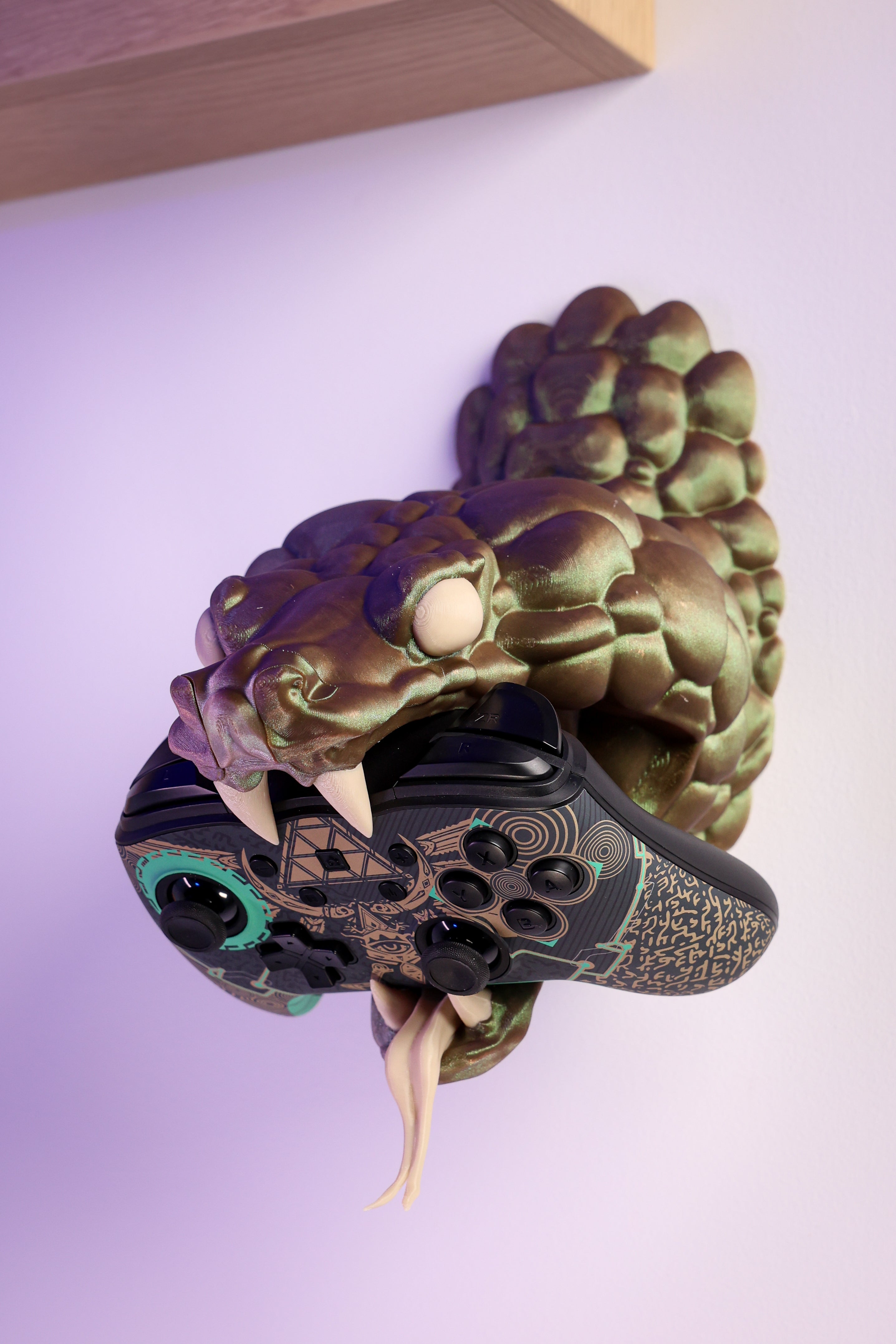 Ten ścienny uchwyt na kontroler do gier zapewnia dekoracyjne miejsce do przechowywania Twojego stanowiska do gier. Bezpiecznie trzyma kontrolery z PlayStation, Xbox i Switch dzięki chwytakowi zasilanemu grawitacją. Używaj go na ścianie lub jako stojak na biurko. Ten stojak z serii Creature pomaga utrzymać porządek w strefie gry.
