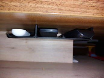 Ten uchwyt na pilota został zaprojektowany, aby zaprowadzić porządek i zminimalizować bałagan w salonie, oferując inteligentne rozwiązanie do przechowywania pilotów i małych urządzeń elektronicznych. Uchwyt jest dyskretnie montowany pod stołem lub półką za pomocą dwustronnej taśmy, dzięki czemu piloty są zawsze pod ręką, kiedy ich potrzebujesz, ale poza zasięgiem wzroku, gdy nie są używane.