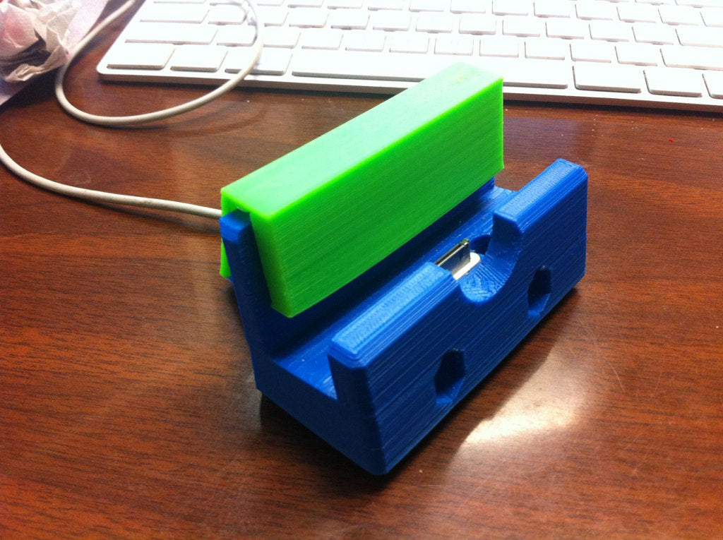 Jest to stacja dokująca do iPada/iPhone'a zaprojektowana tak, aby zmieścić iPada w bardzo grubym etui. Etui można złożyć, aby zmieściło się w stacji dokującej i używać go jako cyfrowego albumu fotograficznego po zadokowaniu. Dodana została również wkładka do użycia podczas dokowania iPhone'a lub iPoda, aby podeprzeć go w głębokim otworze. Ogólnie rzecz biorąc, ten projekt jest przeznaczony dla kogoś, kto ma iPada, który pasuje do otworu, który znajduje się około 5 mm przed środkową linią 30-pinowego złącza i 15 mm za nią. Dodałem półokrągły otwór, aby umożliwić korzystanie z przycisku Home, gdy urządzenie jest zadokowane. Sześciokątne otwory wystające z przodu stacji dokującej mają na celu przekierowanie dźwięku z głośnika iPhone'a i do mikrofonu iPhone'a.