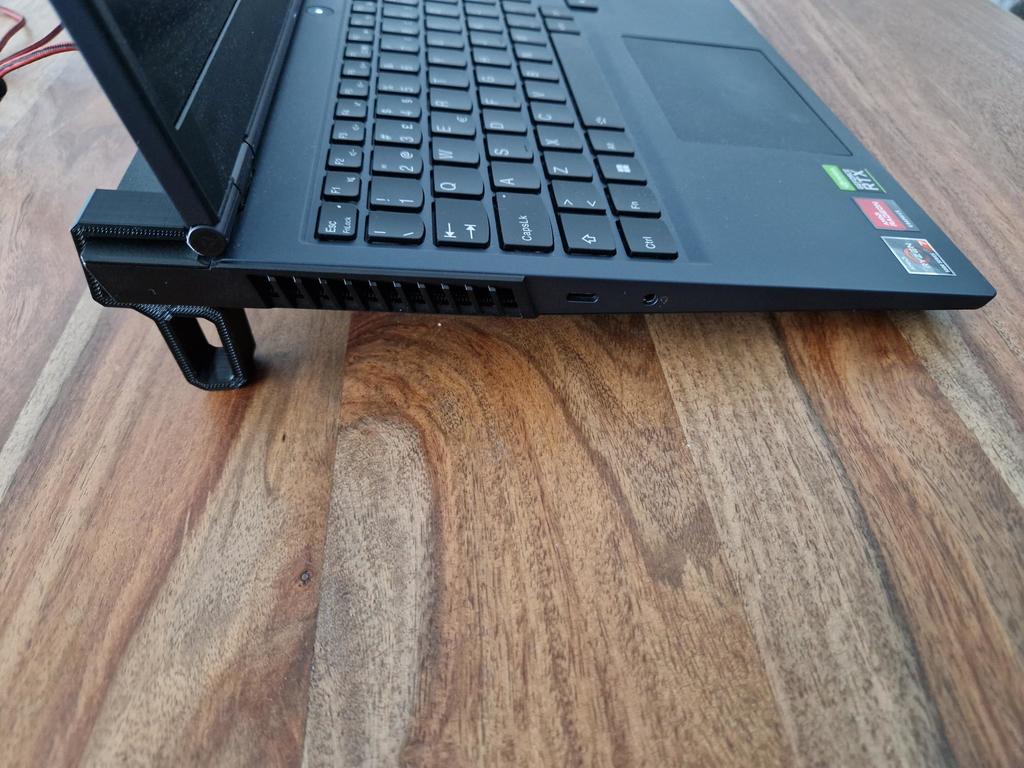 Podstawka pod laptopa zaprojektowana dla Lenovo Legion 5. Podnosząc tył laptopa, można poprawić przepływ powietrza z systemu wentylacji laptopa. Będziesz musiał wydrukować parę nóżek, a także parę małych gumek, aby zapobiec zsuwaniu się nóżek. Nóżki należy umieścić na rogach tylnej części laptopa, nie zakrywając otworów wentylacyjnych.