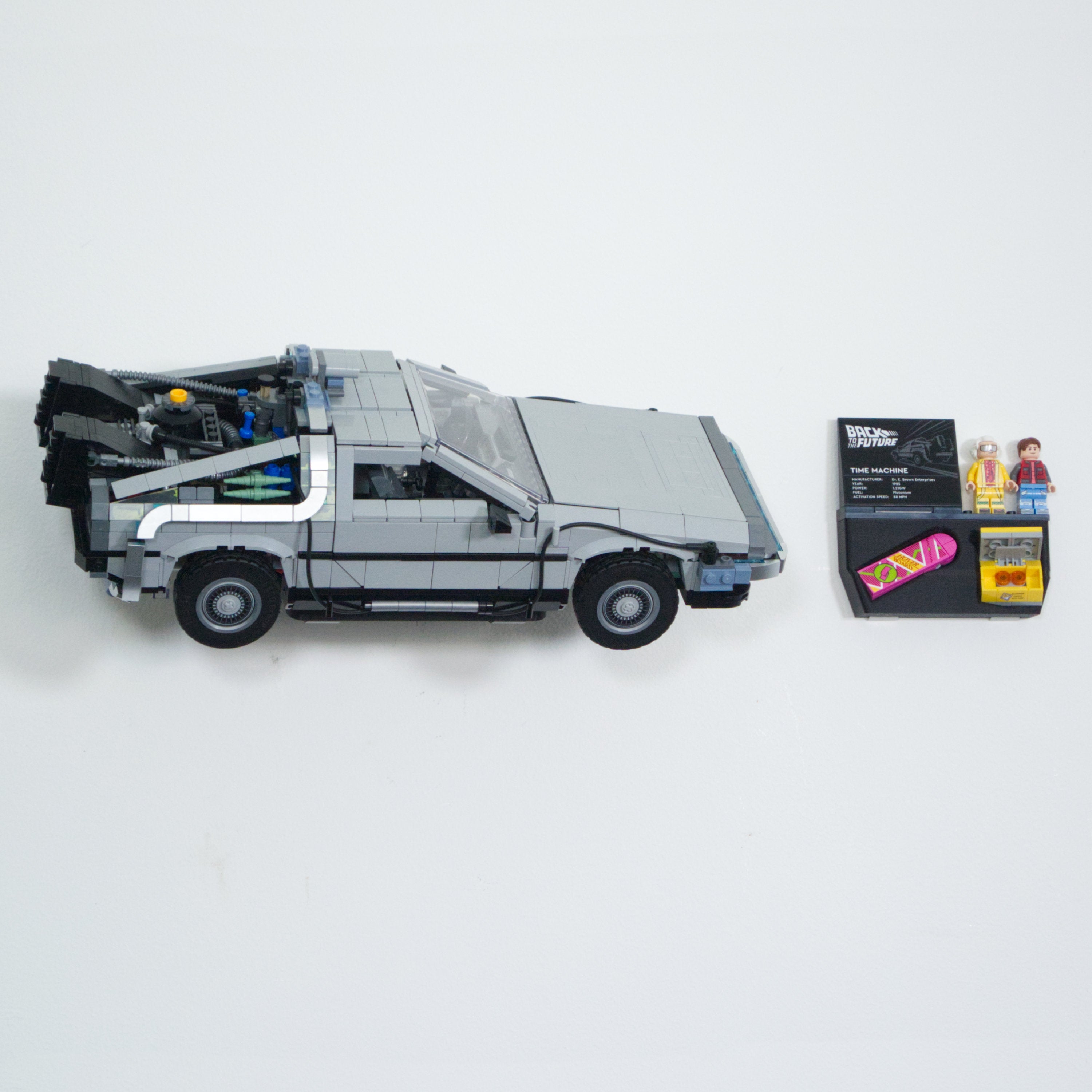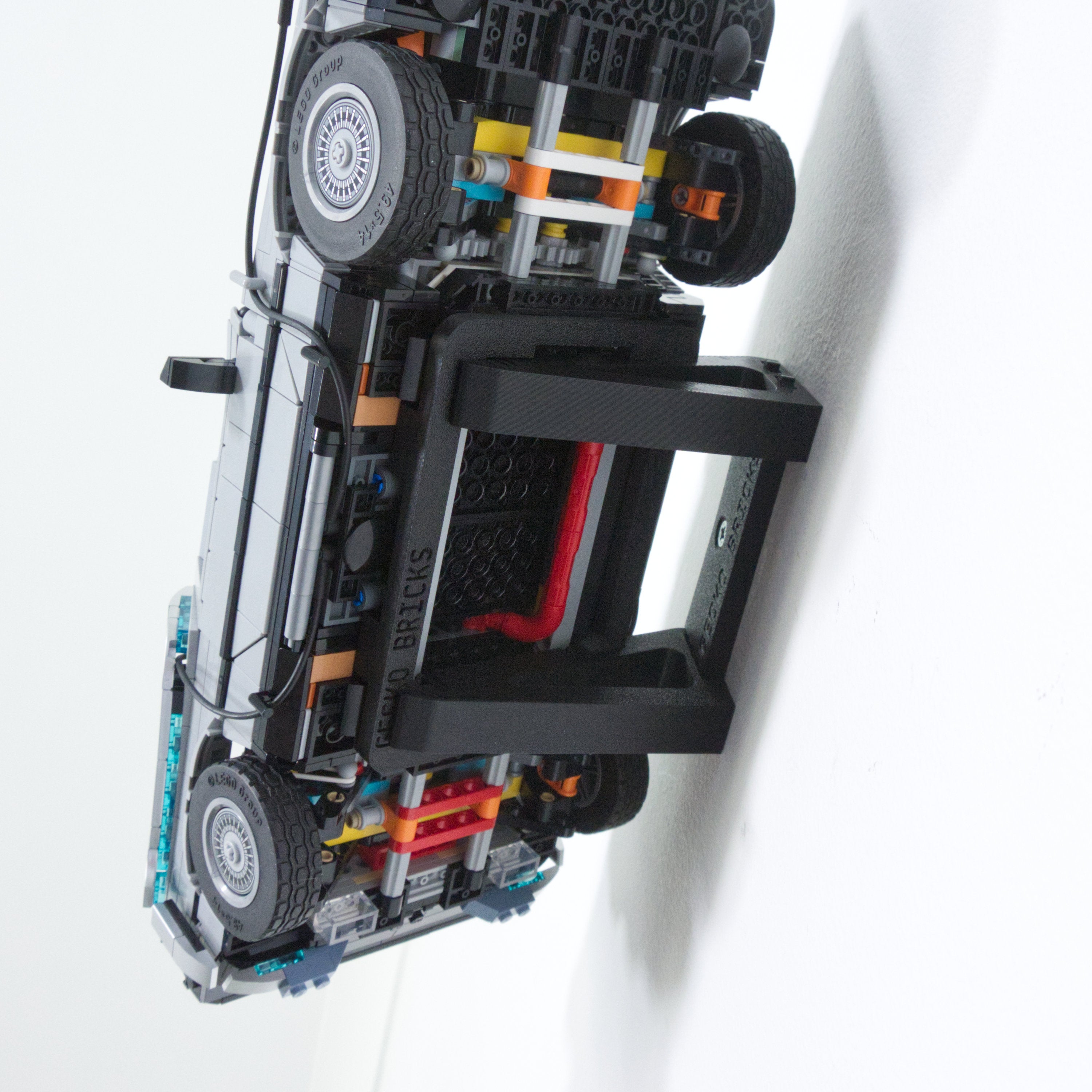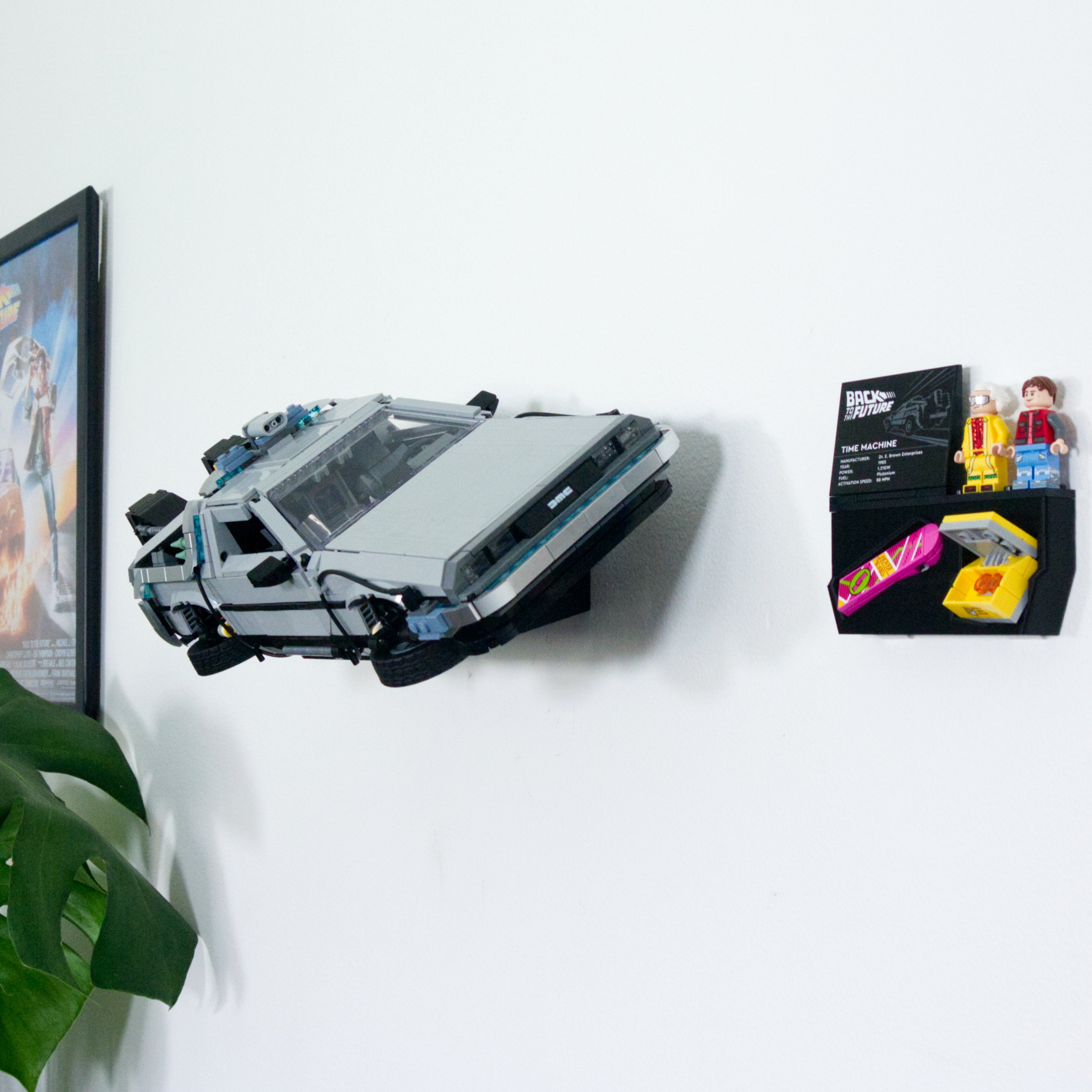 - Specjalnie zaprojektowany wieszak ścienny do modelu DeLorean z zestawu 10300.