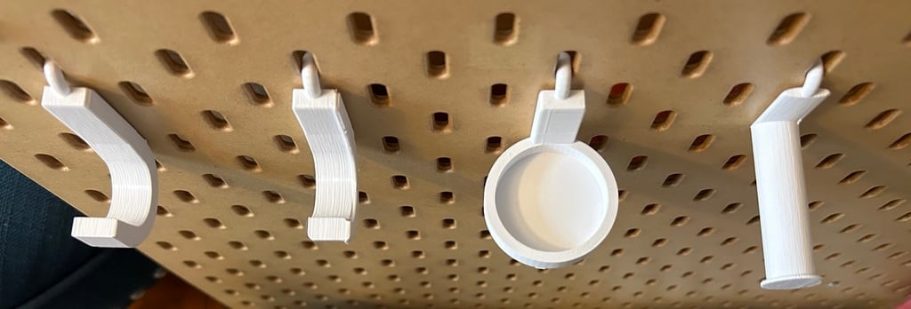 To kolekcja specjalnie zaprojektowanych kołków do tablicy IKEA SKÅDIS. Każdy kołek został zaprojektowany tak, aby pasował do różnych narzędzi i przedmiotów o różnych wymiarach. Kołki obejmują dłuższy haczyk na szersze przedmioty, uchwyt na szpulę lub taśmę oraz specjalny okrągły haczyk, na którym można zawiesić opalarkę. Ponadto podstawa haka jest również dostępna osobno, co można dostosować do konkretnych potrzeb. Każdy haczyk i uchwyt został zaprojektowany tak, aby idealnie pasował do otworów w tablicy IKEA SKÅDIS, które mierzą około 6 mm i są oddalone od siebie o 34 mm.