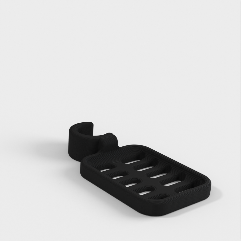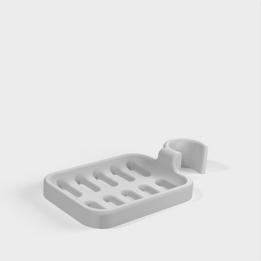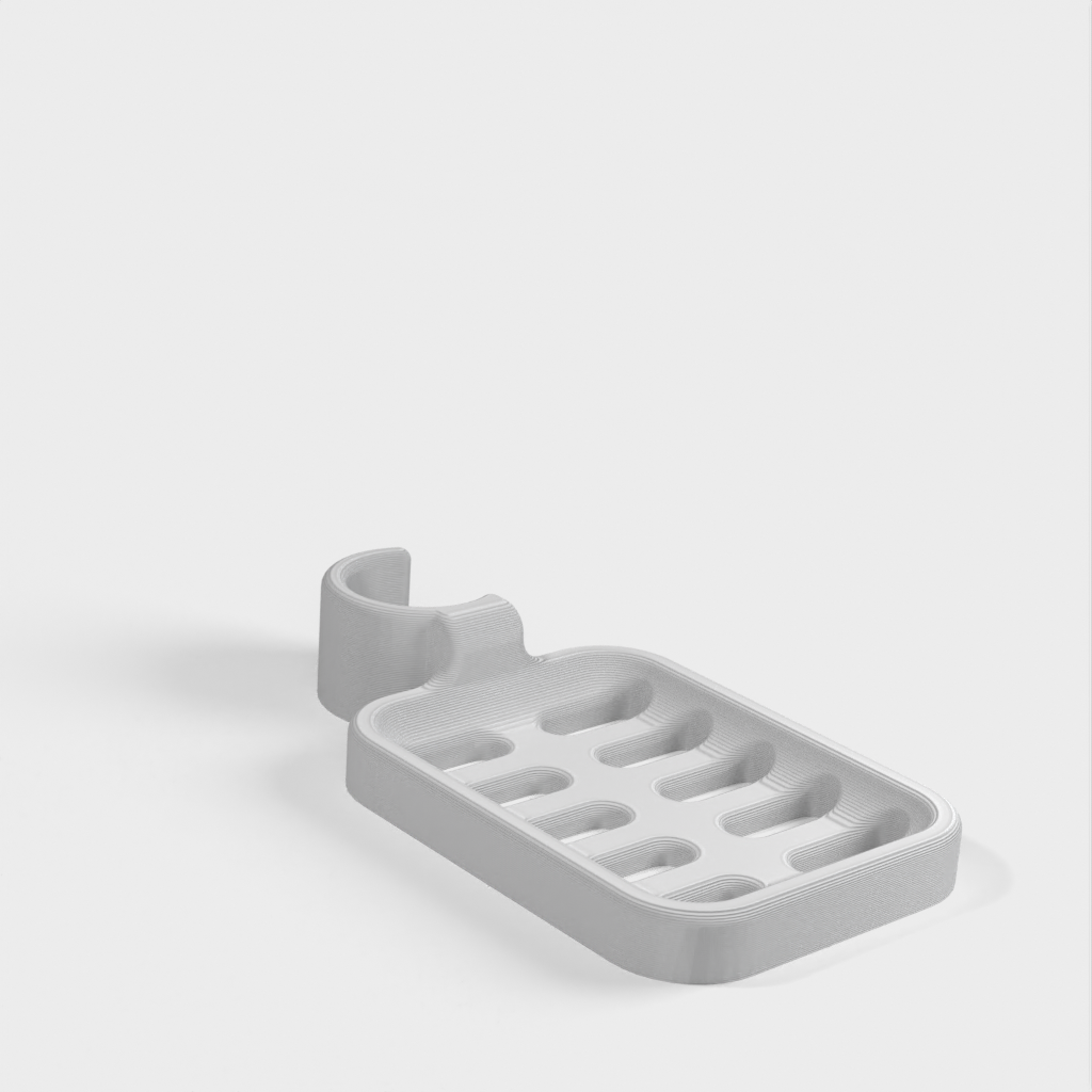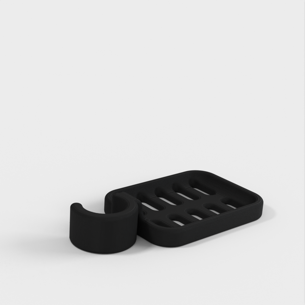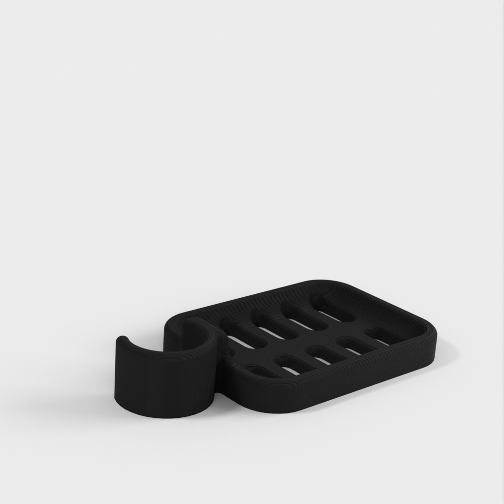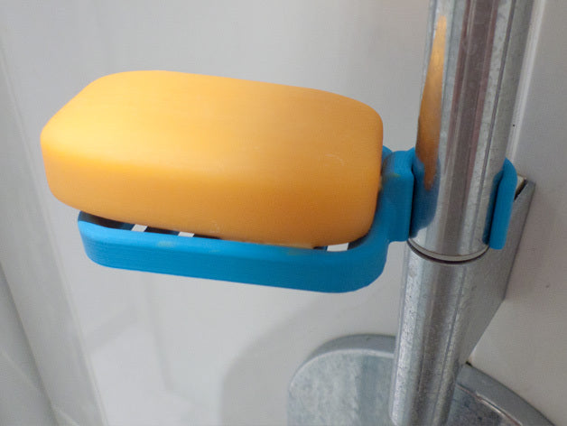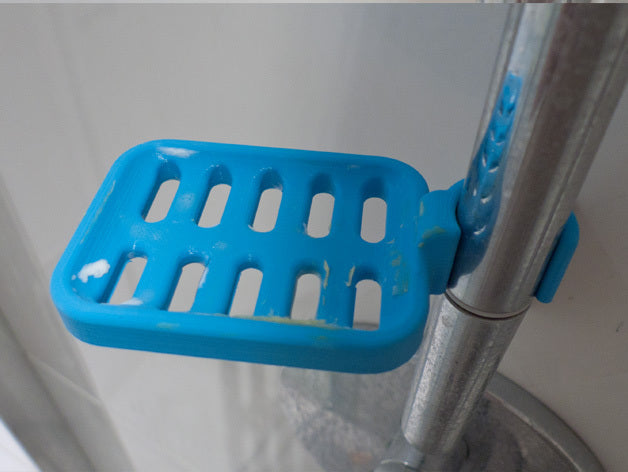 Uchwyt na mydło pod prysznic przeznaczony do mocowania na drążku prysznicowym. Uchwyt na mydło został specjalnie zaprojektowany, aby pasował do okrągłego drążka o średnicy 21,9 mm. Należy pamiętać, że uchwyt na mydło jest nieco mniejszy. Nie zaleca się używania PLA, jeśli to możliwe, ponieważ haczyk może się zepsuć po pewnym czasie, szczególnie pod prysznicem. Tworzywo ABS jest zalecane jako trwalszy materiał dla tego produktu.