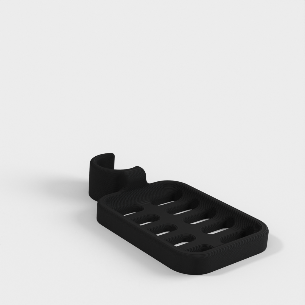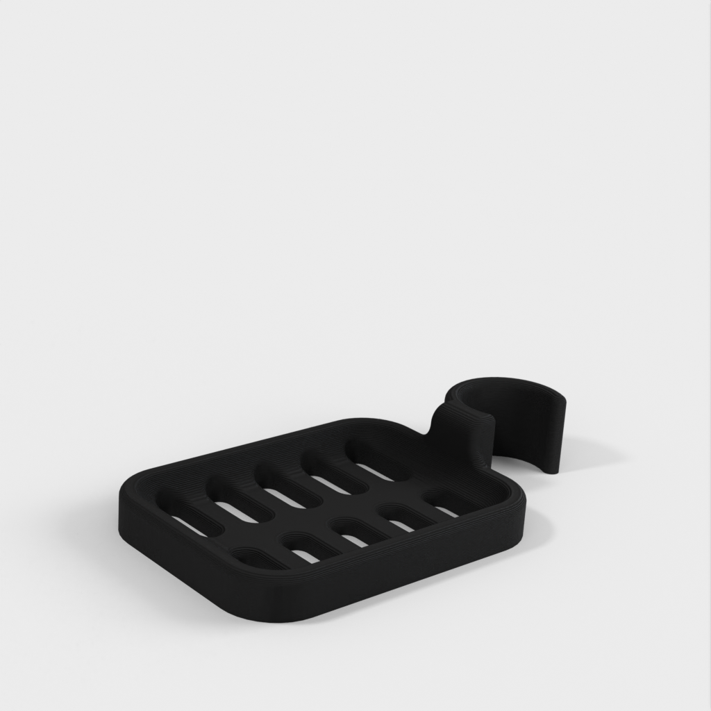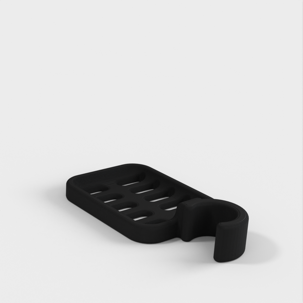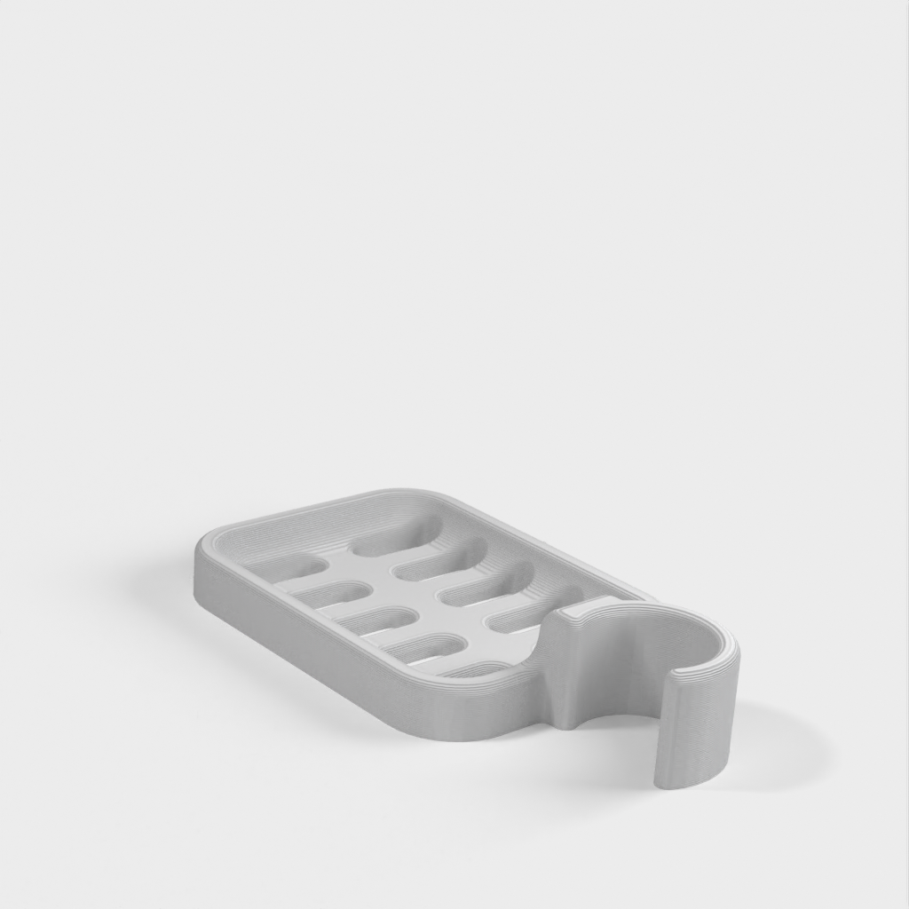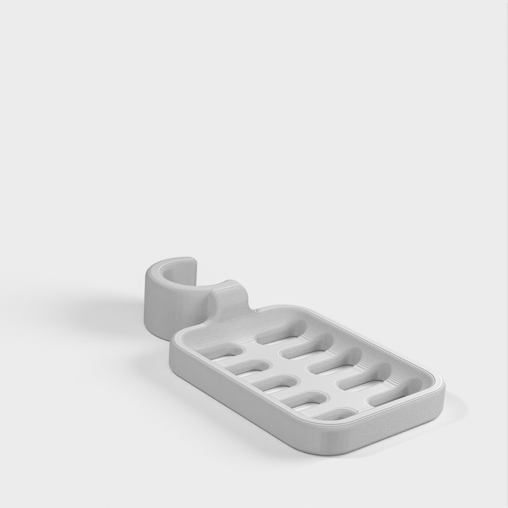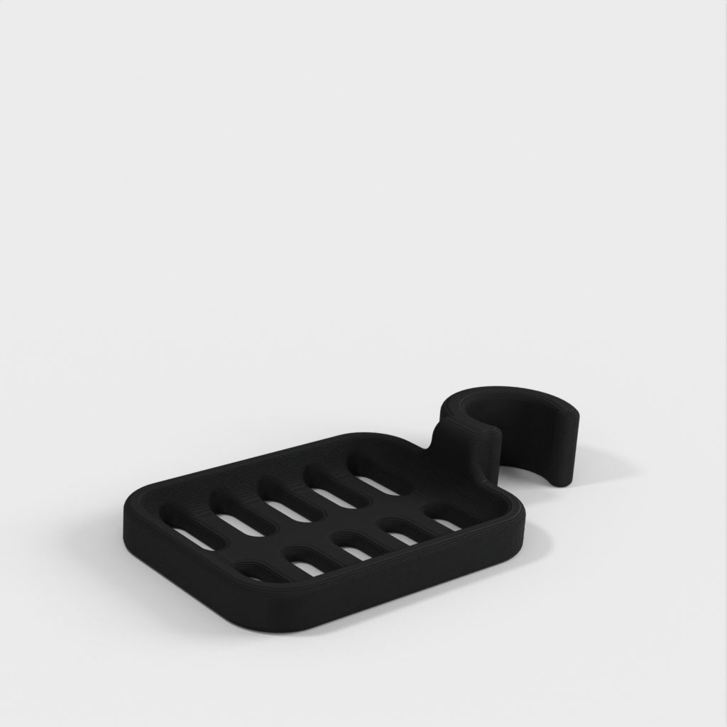 Uchwyt na mydło pod prysznic przeznaczony do mocowania na drążku prysznicowym. Uchwyt na mydło został specjalnie zaprojektowany, aby pasował do okrągłego drążka o średnicy 21,9 mm. Należy pamiętać, że uchwyt na mydło jest nieco mniejszy. Nie zaleca się używania PLA, jeśli to możliwe, ponieważ haczyk może się zepsuć po pewnym czasie, szczególnie pod prysznicem. Tworzywo ABS jest zalecane jako trwalszy materiał dla tego produktu.