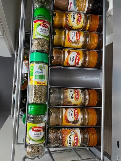 Ten pojemnik na przyprawy oferuje praktyczne rozwiązanie do przechowywania i organizowania przypraw w kuchni. Konstrukcja umożliwia dostosowanie konfiguracji, która efektywnie wykorzystuje przestrzeń i utrzymuje słoiki z przyprawami w łatwo dostępnym miejscu podczas gotowania. Uchwyt można zamontować na istniejących meblach kuchennych, aby zapewnić stabilne umieszczenie, co przyczynia się do uporządkowanej i funkcjonalnej przestrzeni roboczej. Jest to funkcjonalny dodatek do każdej kuchni, w której szuka się uporządkowanego przechowywania przypraw.