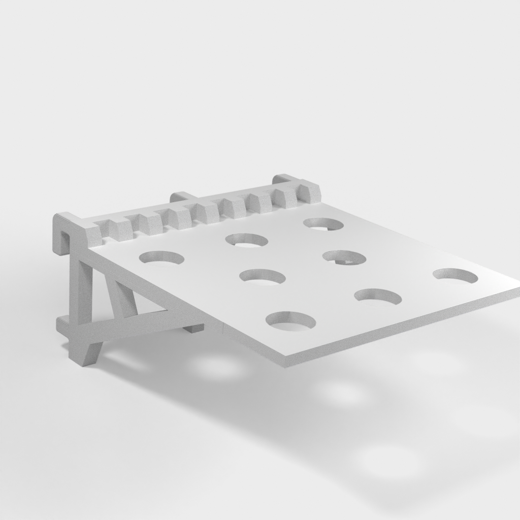 Solidny uchwyt na śruby do tablicy narzędziowej IKEA Skadis. Idealny do przechowywania śrubokrętów w uporządkowany i zorganizowany sposób w warsztacie, szopie lub pojeździe roboczym. Można go łatwo zamontować bezpośrednio na tablicy narzędziowej za pomocą kilku śrub, co zapewnia bardziej efektywne przechowywanie.
