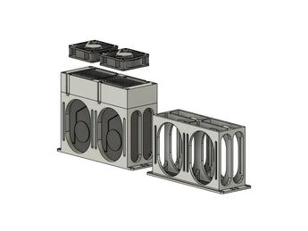 - Dostępny w wariantach umożliwiających umieszczenie wentylatora wewnątrz lub na zewnątrz obudowy.