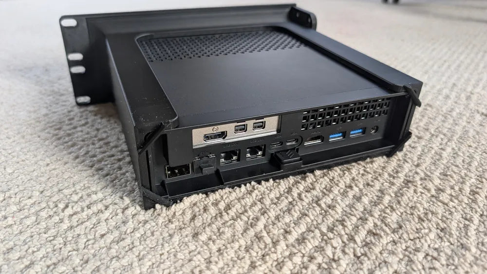 Ten 19-calowy uchwyt do montażu w szafie rack 2U jest przeznaczony do bezpiecznego zamocowania Twojego Minisforum MS-01 w szafie serwerowej. Rozwiązanie to obsługuje różne konfiguracje z miejscem na gumowe nóżki i złącza keystone, co zapewnia uporządkowaną instalację. Jest idealny do domowych laboratoriów (homelabs) i zapewnia stabilne umiejscowienie urządzenia.