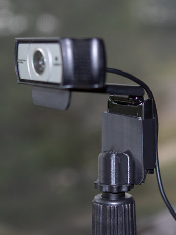Adapter statywu do kamery Logitech C920/C930, który umożliwia umieszczenie jej na statywie mikrofonowym, dzięki czemu można ją swobodnie przesuwać w górę i w dół.
