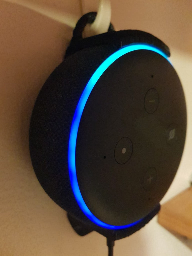 Sprytny sposób na zamontowanie Amazon Alexa Echo Dot 3rd Gen na ścianie. W tym remiksie dodałem pierścień, dzięki czemu można go zawiesić na betonowym haku i uniknąć wykonywania otworów na śruby.