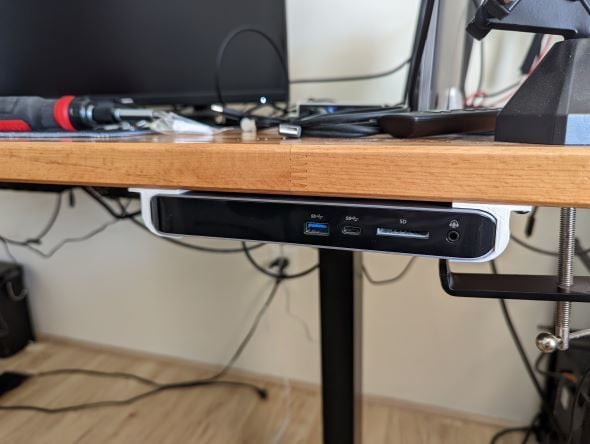 Utrzymuj porządek na biurku, bezpiecznie przechowując koncentrator Belkin Pro USB-C pod stołem dzięki temu wygodnemu uchwytowi.