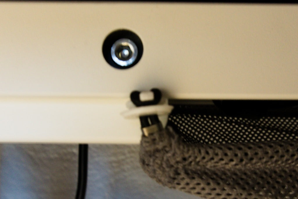 Ten system montażowy umożliwia zamontowanie dołączonej siatki do zarządzania kablami do biurka Ikea Bekant / Galant. Idealny dla tych, którzy zmienili blat biurka i wykorzystali wszystkie 'klipsy' do zainstalowania nowego blatu biurka, a zatem nie mogą już zamontować siatki do zarządzania kablami.