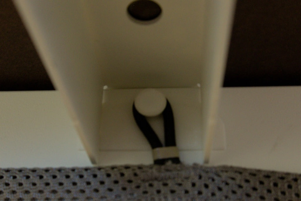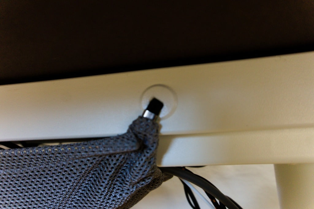Biurko Ikea Bekant/Galant - system mocowania siatki do prowadzenia kabli