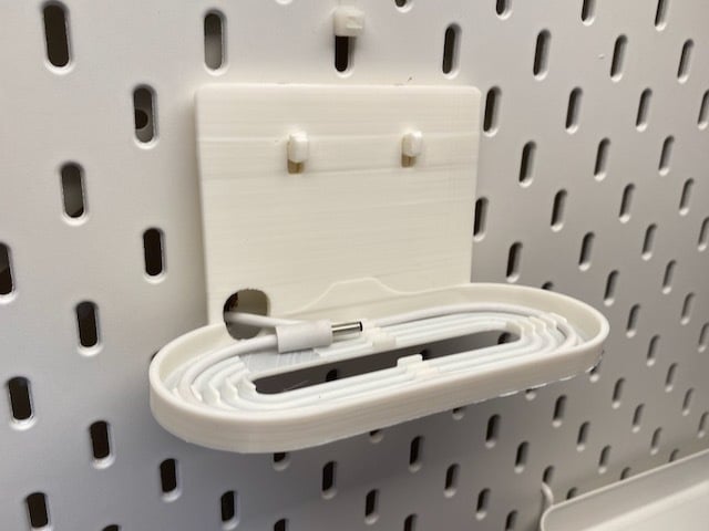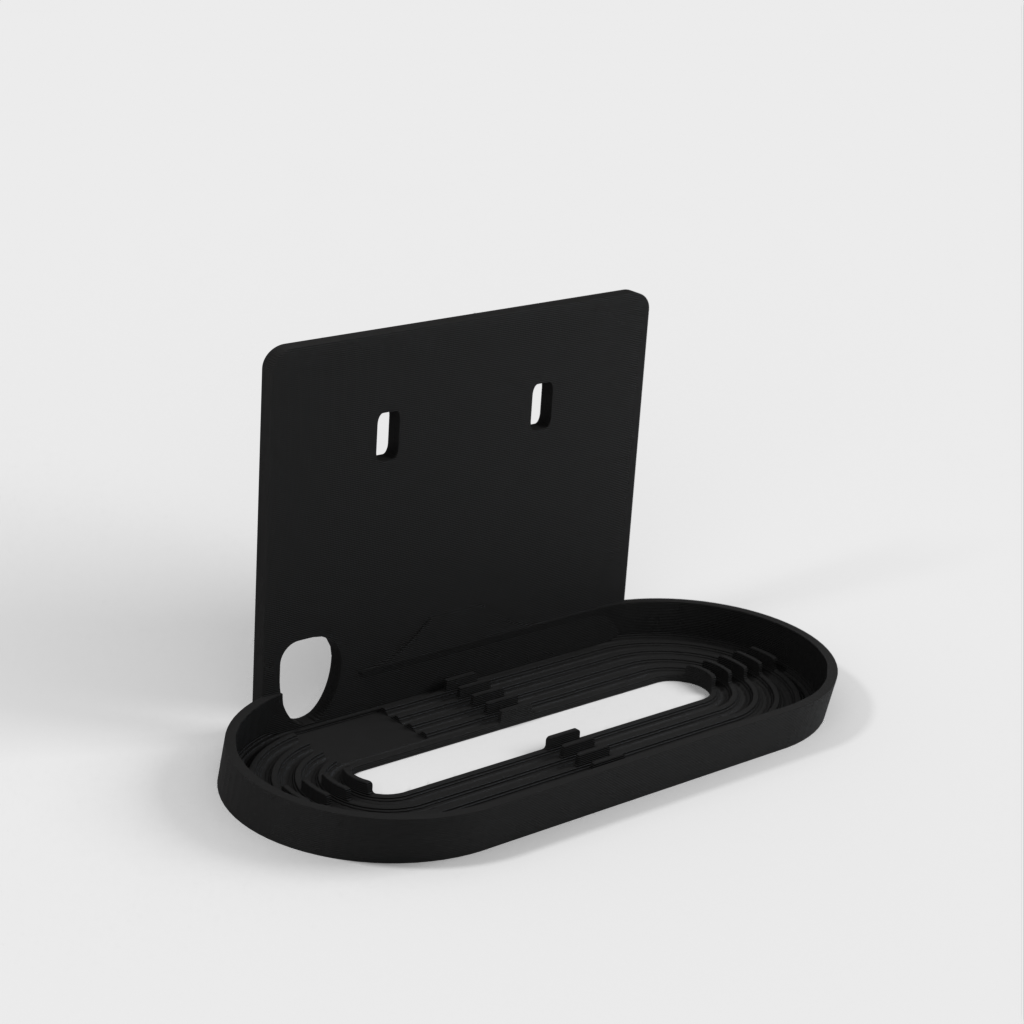 Proste rozwiązanie montażowe dla Nest / Google Home Hub do desek IKEA Skadis. Koncentrator znajduje się jak najbliżej płytki, a kabel można poprowadzić przez jedno z istniejących gniazd Skadis, co oznacza, że żadne kable nie są widoczne. Do schludnej instalacji wymagane są dwa uniwersalne haczyki.
