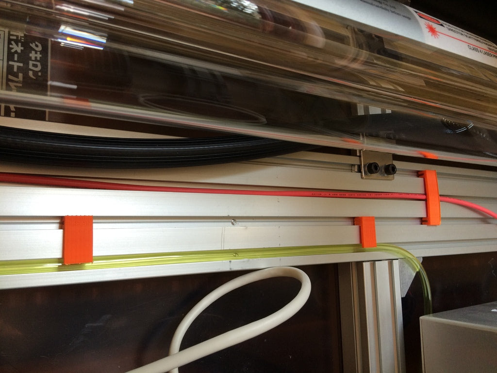 Zaciski kablowe Lasersaur zostały zaprojektowane, aby pomóc w uporządkowaniu kabli wokół sprzętu Lasersaur. Ten funkcjonalny uchwyt kablowy dokładnie pasuje do rowków wytłaczanych i przyczynia się do przejrzystego i uporządkowanego stanowiska pracy. Stosując to rozwiązanie, poprawiasz prowadzenie kabli, co zmniejsza ryzyko splątania się przewodów i potencjalnych zakłóceń w pracy. Wspiera to bardziej zorganizowaną konfigurację i przyczynia się do maksymalizacji wydajności miejsca pracy.