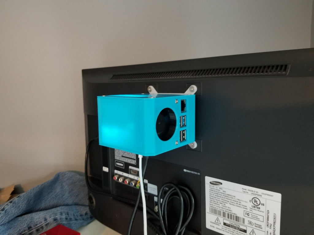 • Minimalistyczny uchwyt do montażu VESA do umieszczania Raspberry Pi na monitorach lub telewizorach.