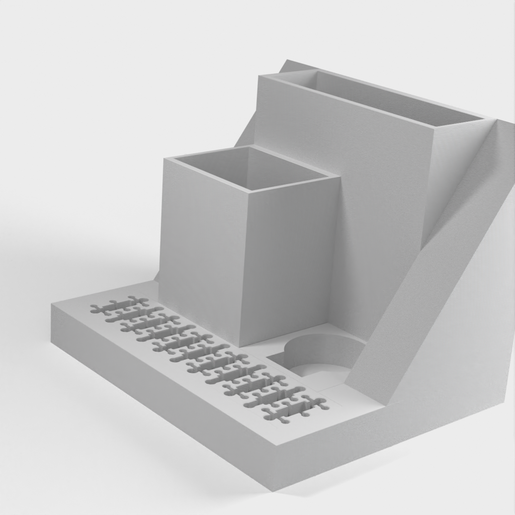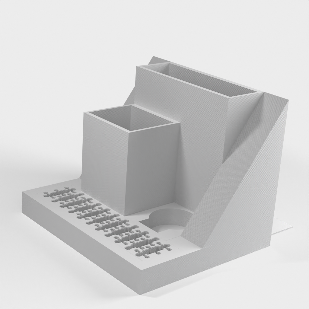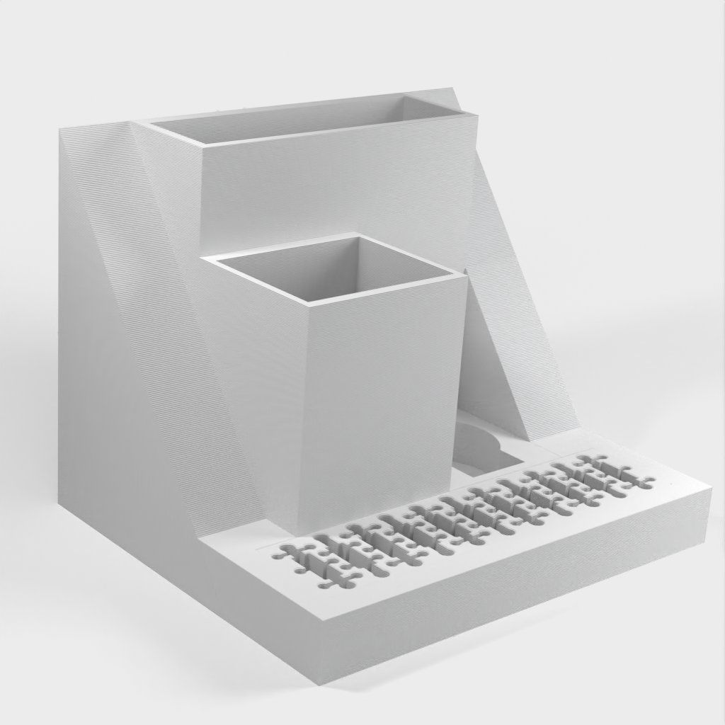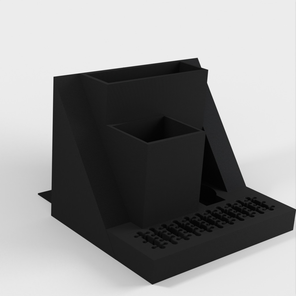 Organizer na biurko z miejscem na laptopa, który można łatwo wsunąć pod tablicę korkową obok biurka. Model ten posiada również wbudowane gniazdo USB i uchwyt na karty SD, a także oddzielne gniazda na tablet TI-84 Plus CE oraz długopisy i inne drobne przedmioty. Uporządkuj swoje biurko i zwiększ produktywność dzięki temu eleganckiemu i funkcjonalnemu organizerowi.