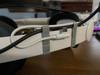Ten klips do kabli został zaprojektowany w celu poprawy wrażeń VR dzięki Meta Quest 3, szczególnie podczas korzystania z Elite Strap z baterią. Rozwiązuje problem luźno wiszących kabli Link i baterii, które mogą zakłócać Twoje zanurzenie i powodować nieporządny wygląd.
