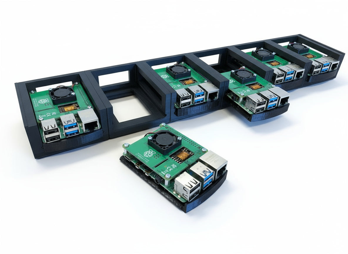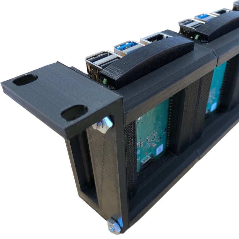 Ten prosty i wytrzymały wspornik, pasujący do szafy serwerowej 1U 19 cali, idealnie nadaje się do montażu 6 urządzeń Raspberry Pi 4 korzystających z Power Over Ethernet (PoE). Dzięki temu rozwiązaniu 1U klaster Raspberry Pi 4 pozostanie bardzo prosty, uporządkowany i zorganizowany. Pełna cena obejmuje konfigurację szafy rack dla 6 Pi, która obejmuje 6 części ramy, 6 części tacy i zestaw "uszu".