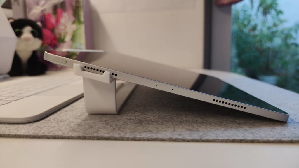 Stojak jest wyposażony w precyzyjne wycięcie na głośniki, dzięki czemu dźwięk pozostaje czysty i niezakłócony podczas użytkowania. Sztywniejszy i szerszy wspornik podstawy przyczynia się do poprawy stabilności, dzięki czemu tablet leży bezpiecznie nawet podczas intensywnych sesji kreatywnych. Skośne krawędzie zapewniają gładki i wygodny wygląd.