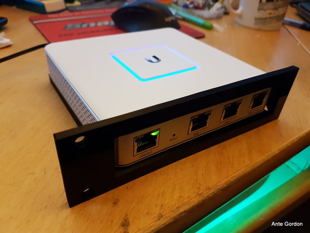 Prostokątny uchwyt montażowy 19' specjalnie zaprojektowany do Ubiquiti Security Gateway (USG). Ten uchwyt zapewnia trwały i stabilny sposób montażu routera w racku, co jest idealne zarówno dla użytkowników profesjonalnych, jak i prywatnych, którzy chcą skutecznie zorganizować swoje ustawienia sieciowe. Uchwyt został zaprojektowany tak, aby pomieścić USG, co zapewnia, że Twoje urządzenie jest dobrze podparte i łatwo dostępne.
