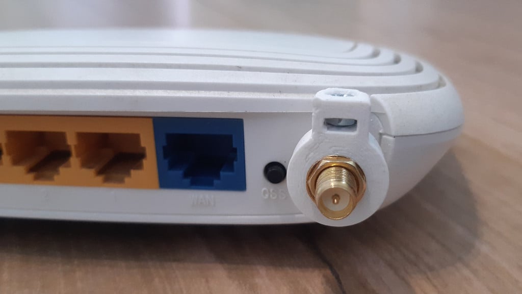 Jest to uchwyt na złącza RP-SMA do routerów TP-Link (TL-WR841N, TL-WR740N). Uchwyt służy do konwersji routera z anteną stałą na antenę odłączaną. Został zaprojektowany do użycia śruby z łbem stożkowym M2.5 do przykręcenia uchwytu na miejscu.