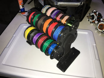 Konstrukcja umożliwia montaż na ścianie, co zwalnia cenne miejsce na blacie np. w warsztacie, pracowni lub pokoju hobbystycznym. Funkcja obrotowa ułatwia szybkie i efektywne znajdowanie i wybieranie żądanej szpuli z drutem. Jako praktyczny organizer kabli pomaga utrzymać porządek w materiałach i służy jako skuteczny uchwyt na kable do różnych projektów.