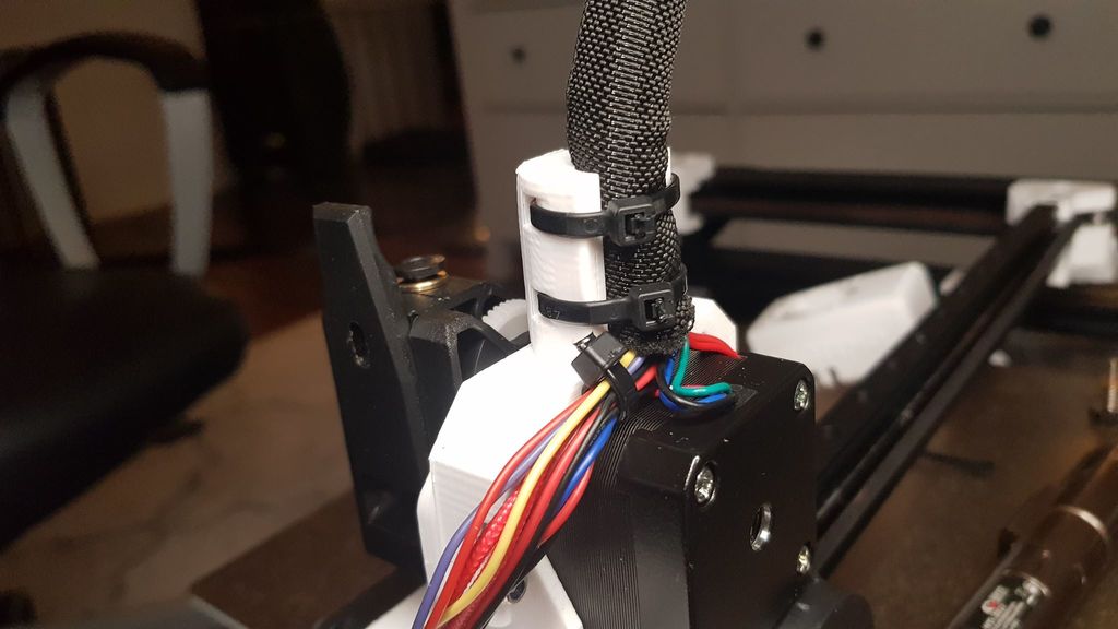 Ten uchwyt na kabel został zaprojektowany specjalnie dla BLV MGN Cube X-carriage i oferuje praktyczne rozwiązanie do organizacji kabli. Jego celem jest utrzymywanie kabli z ekstrudera direct drive bezpiecznie na swoim miejscu, aby nie zakłócały ruchów drukarki podczas pracy.