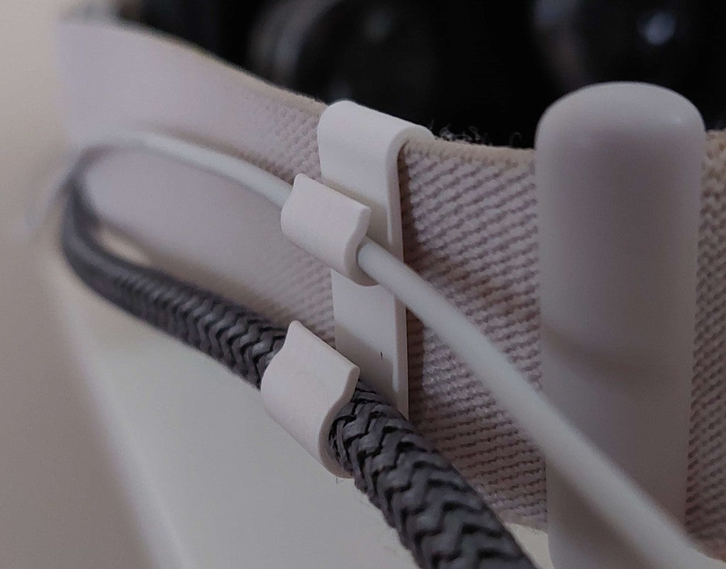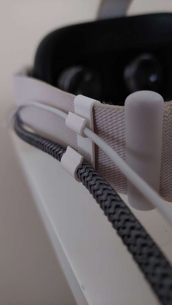 Klips jest wyposażony w dwa oddzielne uchwyty: jeden o średnicy 6,2 mm, idealny do kabla Link, oraz mniejszy uchwyt o średnicy 3 mm, idealny do większości kabli słuchawkowych. Można go łatwo zamontować na pasku zestawu słuchawkowego i może tam pozostać na stałe. Kabel można z łatwością wkładać i wyjmować, nawet podczas noszenia zestawu VR, co zapewnia bezproblemowe i zorganizowane wrażenia z gry.