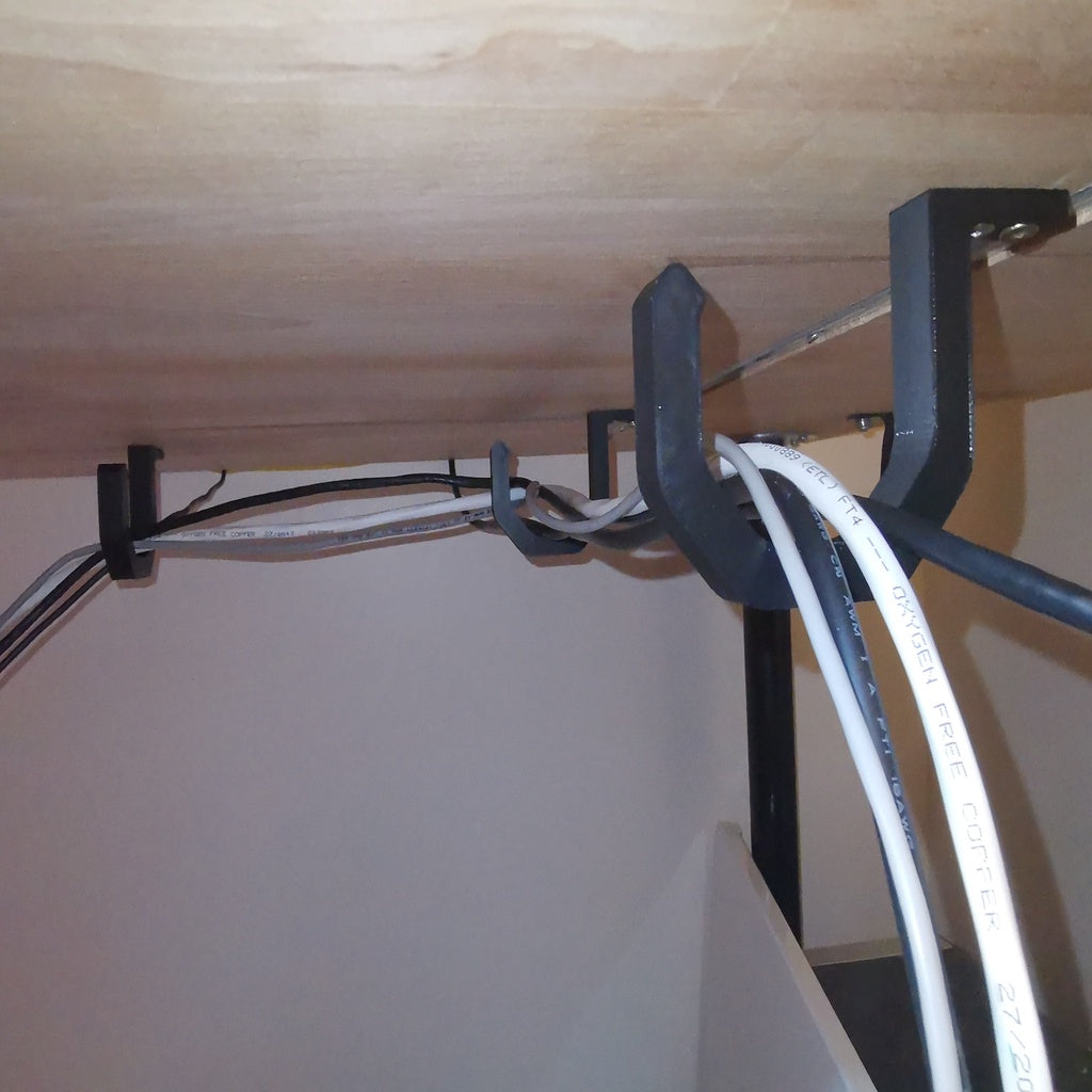 Ten hak J został opracowany, aby zapewnić skuteczne zarządzanie kablami pod biurkiem. Został zaprojektowany do obsługi wielu przewodów kablowych i z łatwością może pomieścić wiązkę do 30 kabli sieciowych CAT-5e, dzięki czemu nadaje się zarówno do domowych biur, jak i innych stacji roboczych. Celem jest zebranie i ukrycie kabli w celu zmniejszenia bałaganu i poprawy estetyki miejsca pracy. Hak przyczynia się do bardziej zorganizowanej i bezpiecznej konfiguracji urządzeń elektronicznych. Montaż odbywa się za pomocą zagłębionych otworów o wymiarach pasujących do wkrętów do drewna nr 8, co zapewnia stabilne i dyskretne mocowanie do spodniej części biurka. Ten uchwyt na kable pomaga utrzymać porządek w przewodach i zapewnia bardziej uporządkowane i funkcjonalne środowisko.