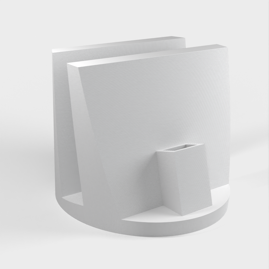 Prosty uchwyt do samochodowego uchwytu na kubek, który trzyma telefon. Uchwyt ma również małą komorę do przechowywania kabla ładującego, dzięki czemu nie musi się unosić.