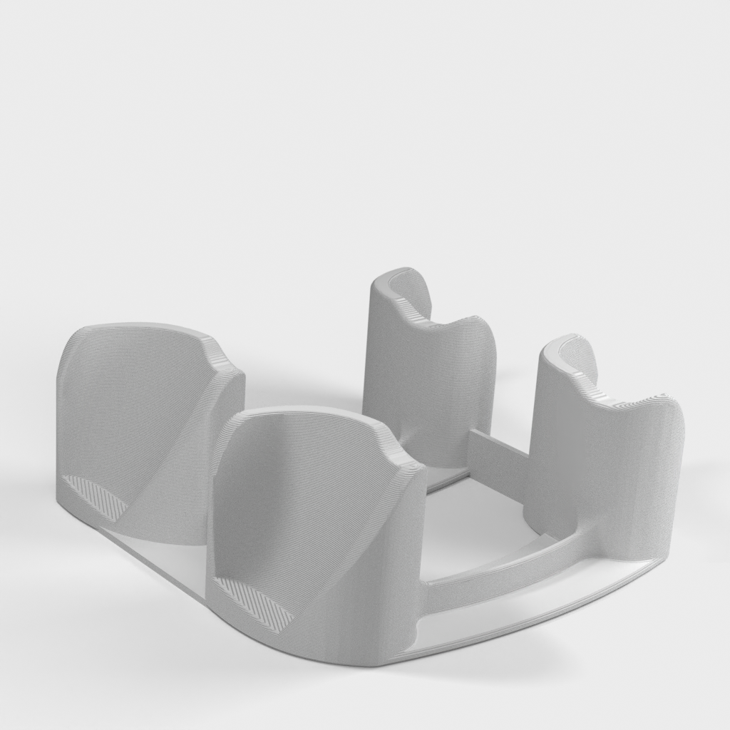 Dzięki temu stojakowi kontrolery uzyskują bezpieczne i stabilne rozwiązanie do przechowywania. Pomaga zapobiegać zadrapaniom i innym uszkodzeniom, które mogą wystąpić podczas przechowywania luzem, i utrzymuje je w gotowości do użycia. Kompaktowy kształt stojaka sprawia, że idealnie nadaje się do umieszczenia na biurku, obok konsoli lub na półce, bez zajmowania zbędnego miejsca. Przyczynia się do usprawnienia i uporządkowania konfiguracji gier.