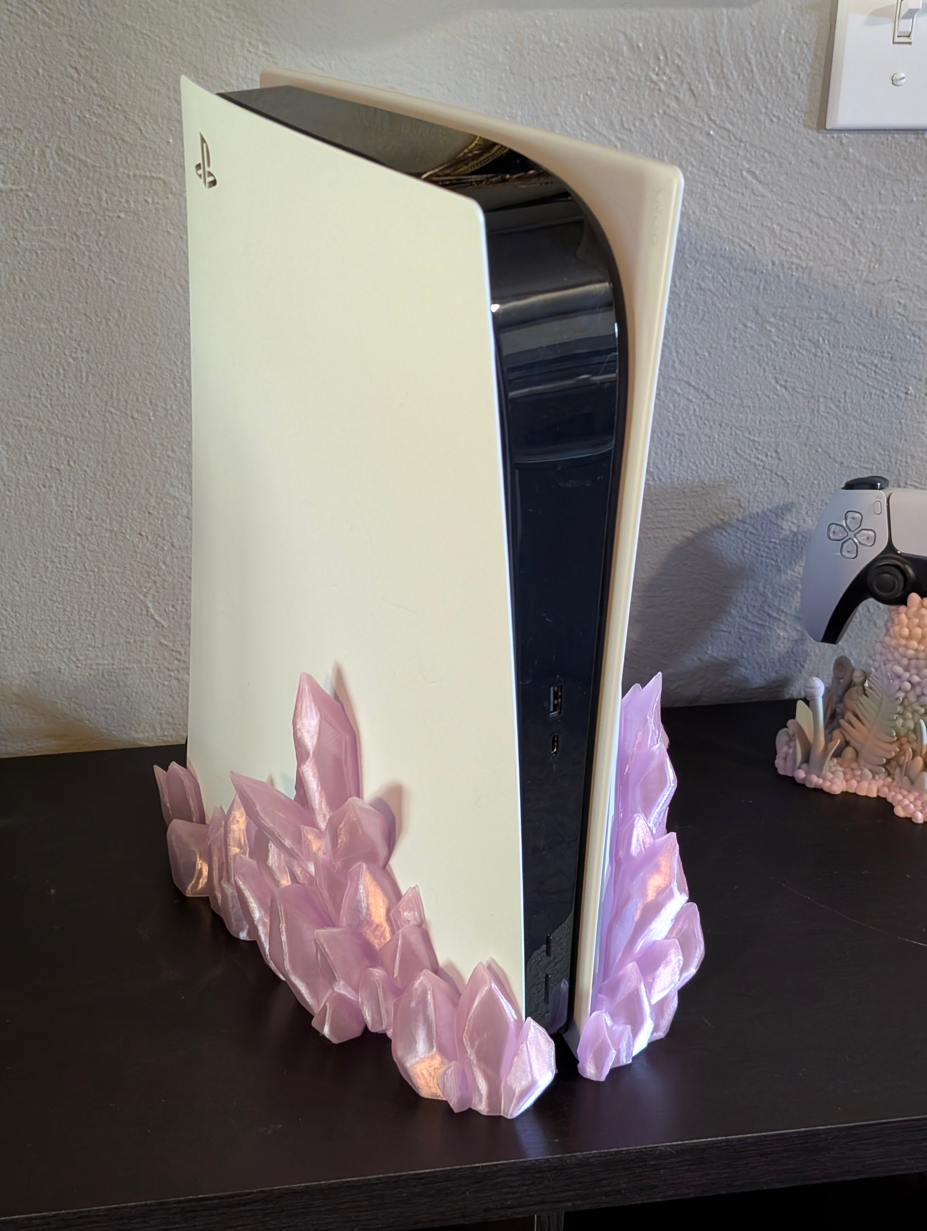 Ten stylowy kryształowy stojak jest przeznaczony wyłącznie dla edycji Disc PlayStation 5. Utrzymuje konsolę bezpiecznie w pozycji pionowej, oszczędzając miejsce. Stojak zapewnia optymalny przepływ powietrza i dodaje unikalny element dekoracyjny do Twojej konfiguracji do gier.