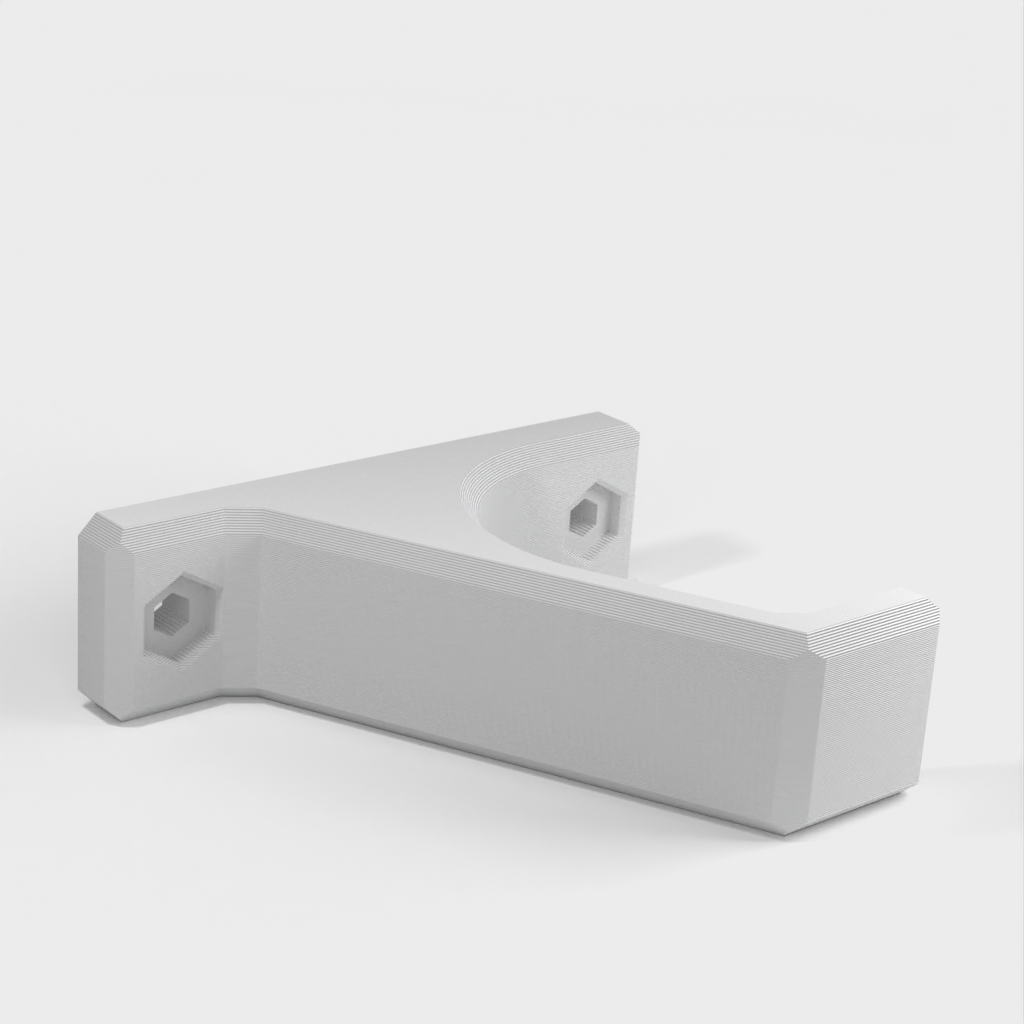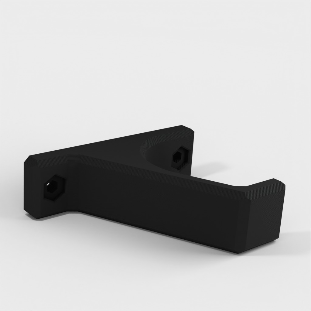 Wieszak na kask rowerowy MTB z praktycznym haczykiem, który można zamontować na ścianie, aby zapewnić łatwe i bezpieczne przechowywanie kasku. Sześciokątne otwory na śruby zapewniają produkcję przyjazną dla drukarki, a model ma wpuszczone miejsce na główkę śruby, dzięki czemu nie przeszkadza ona kaskowi. Odległość między otworami montażowymi wynosi 53 mm, co pasuje do śrub o średnicy do 4 mm i główkach o średnicy 8 mm i grubości 2 mm.