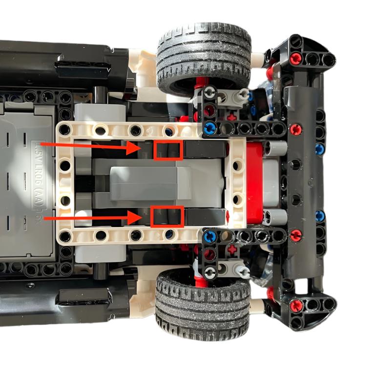 - Zapewnia, że samochód Lego przylega szczelnie i płasko do ściany.