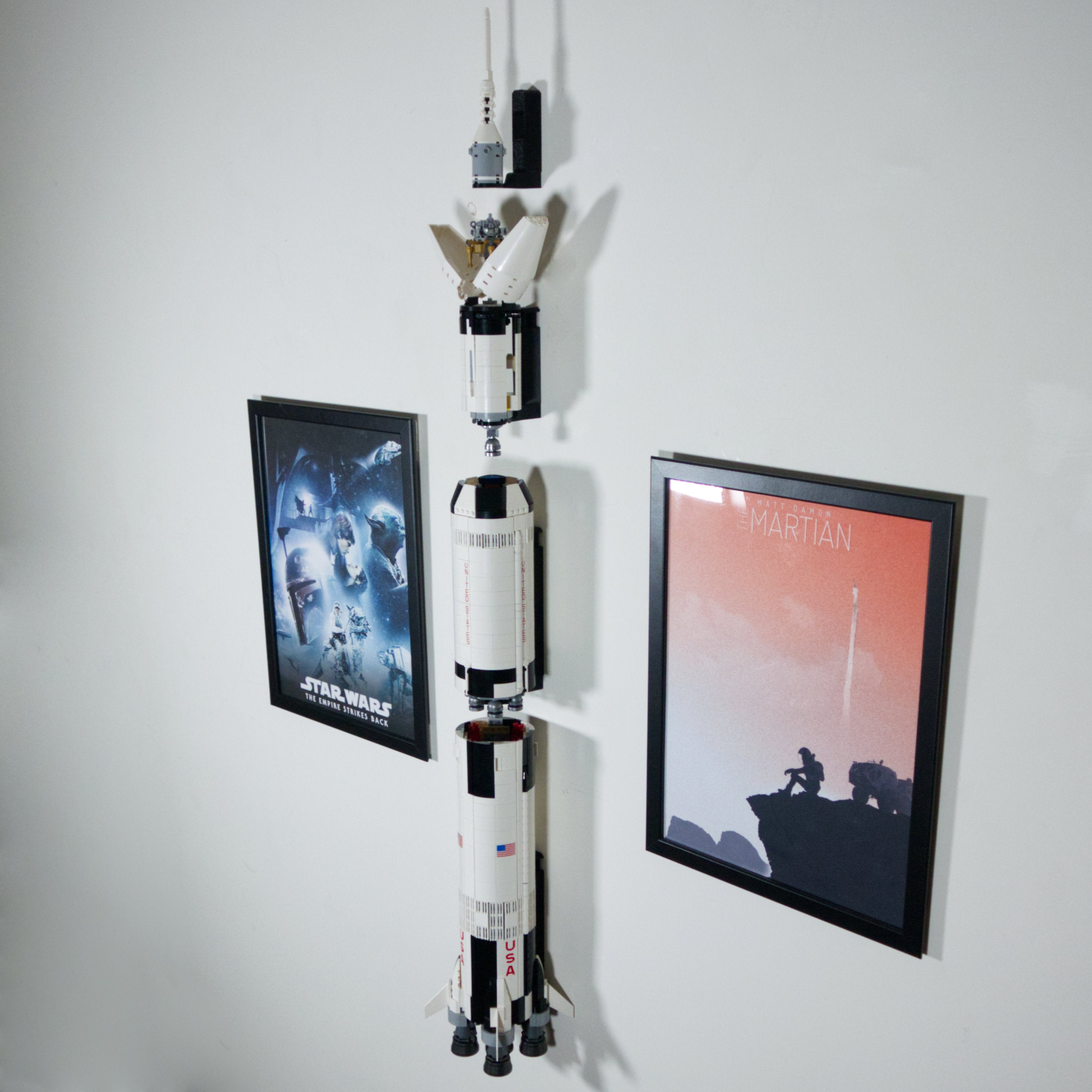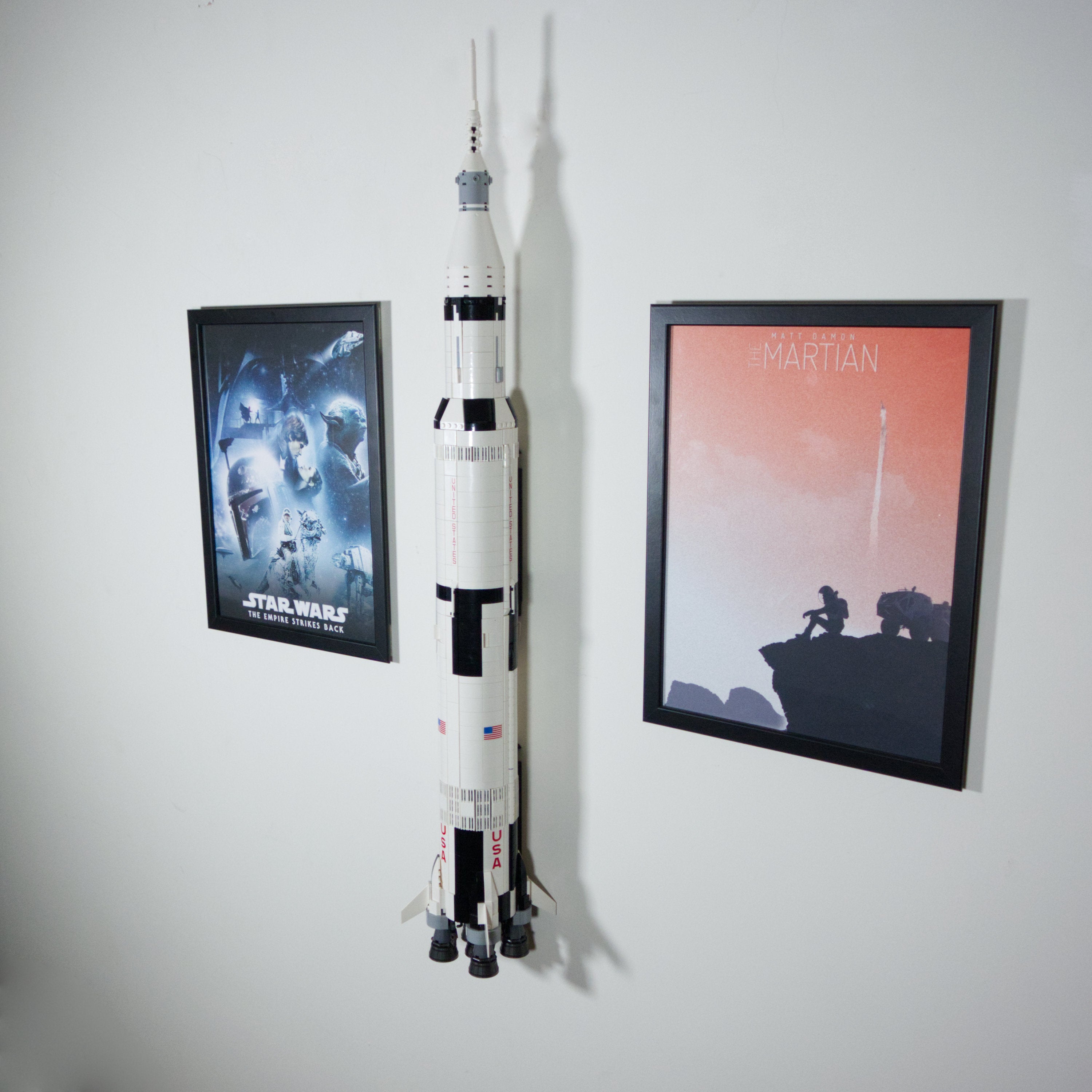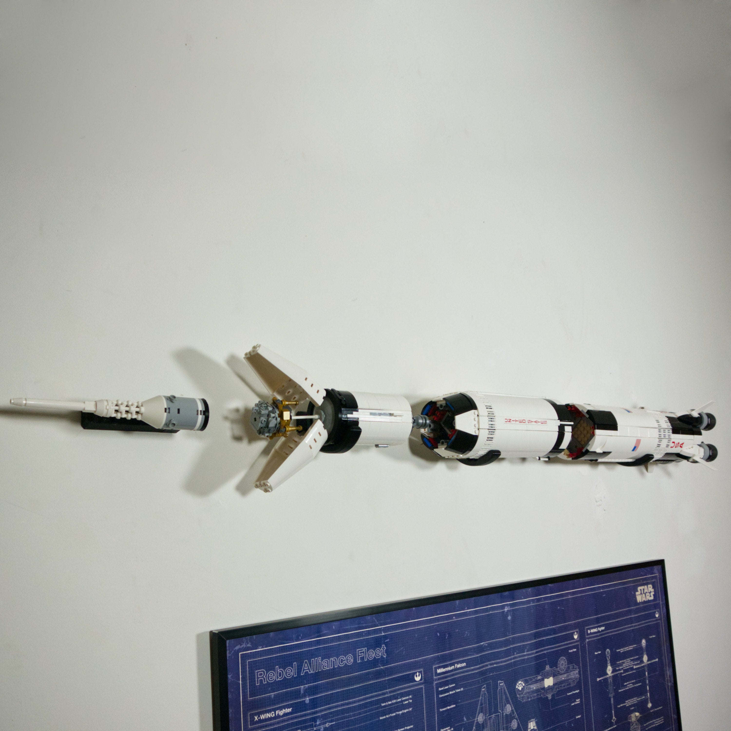 Minimalistyczny wieszak ścienny na rakietę Saturn V