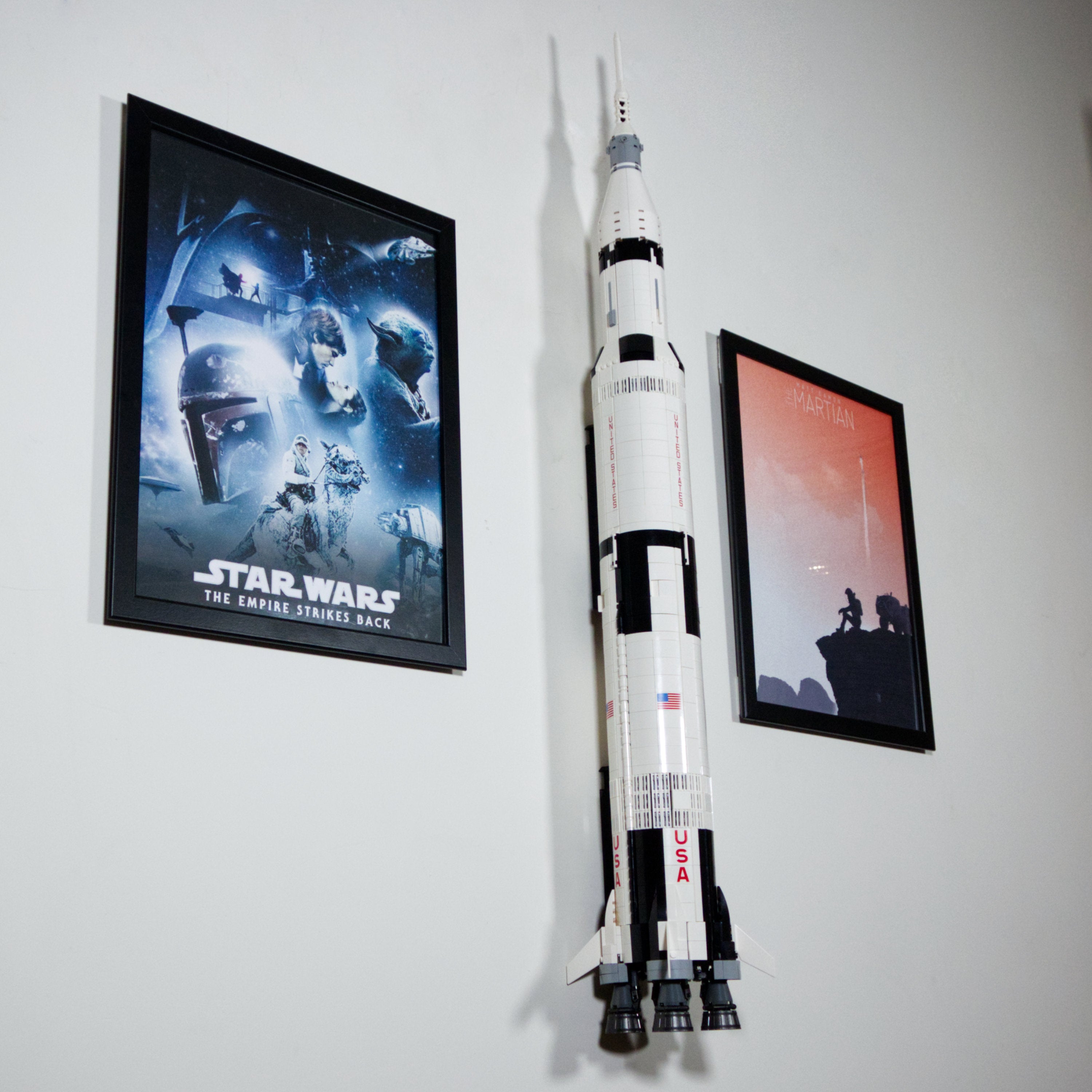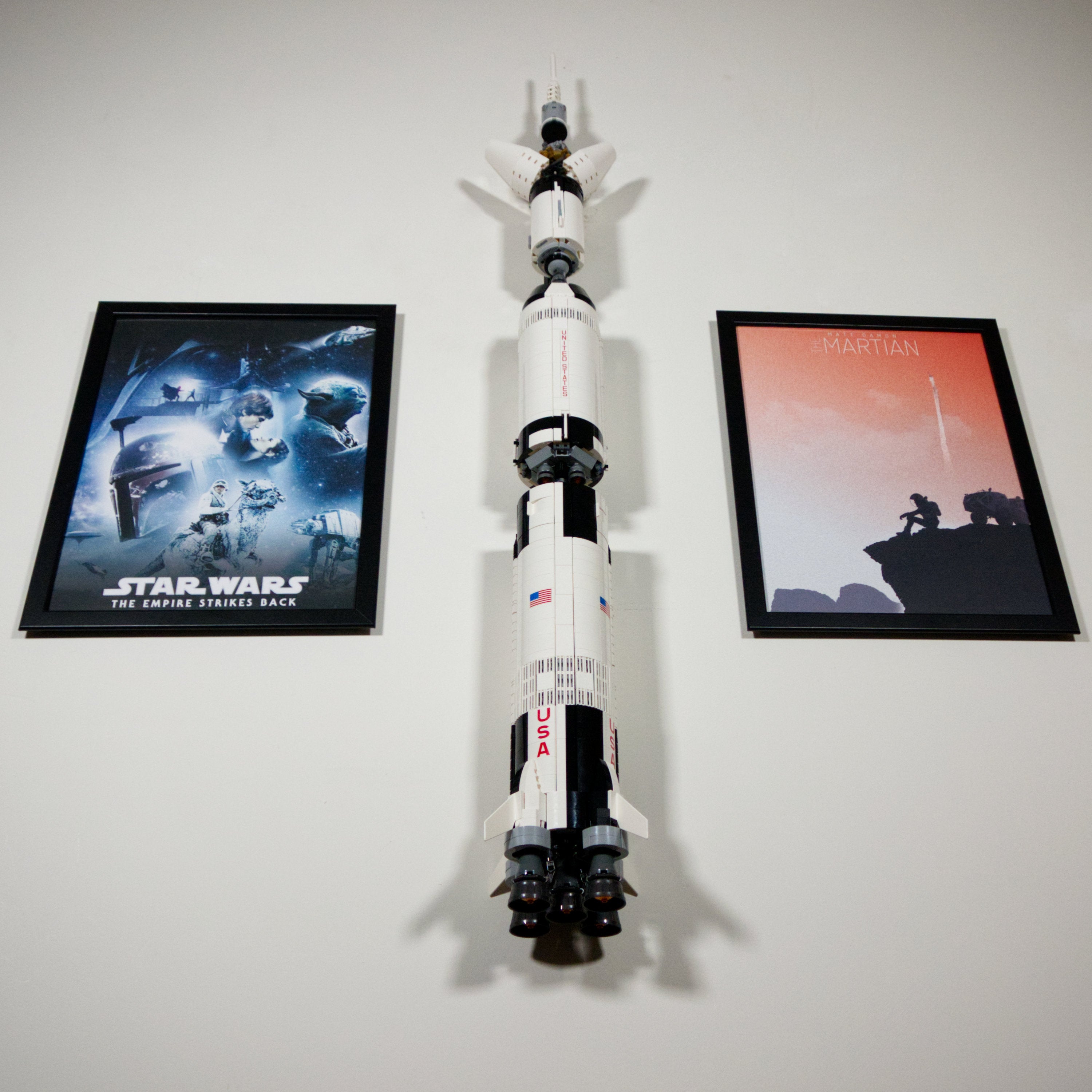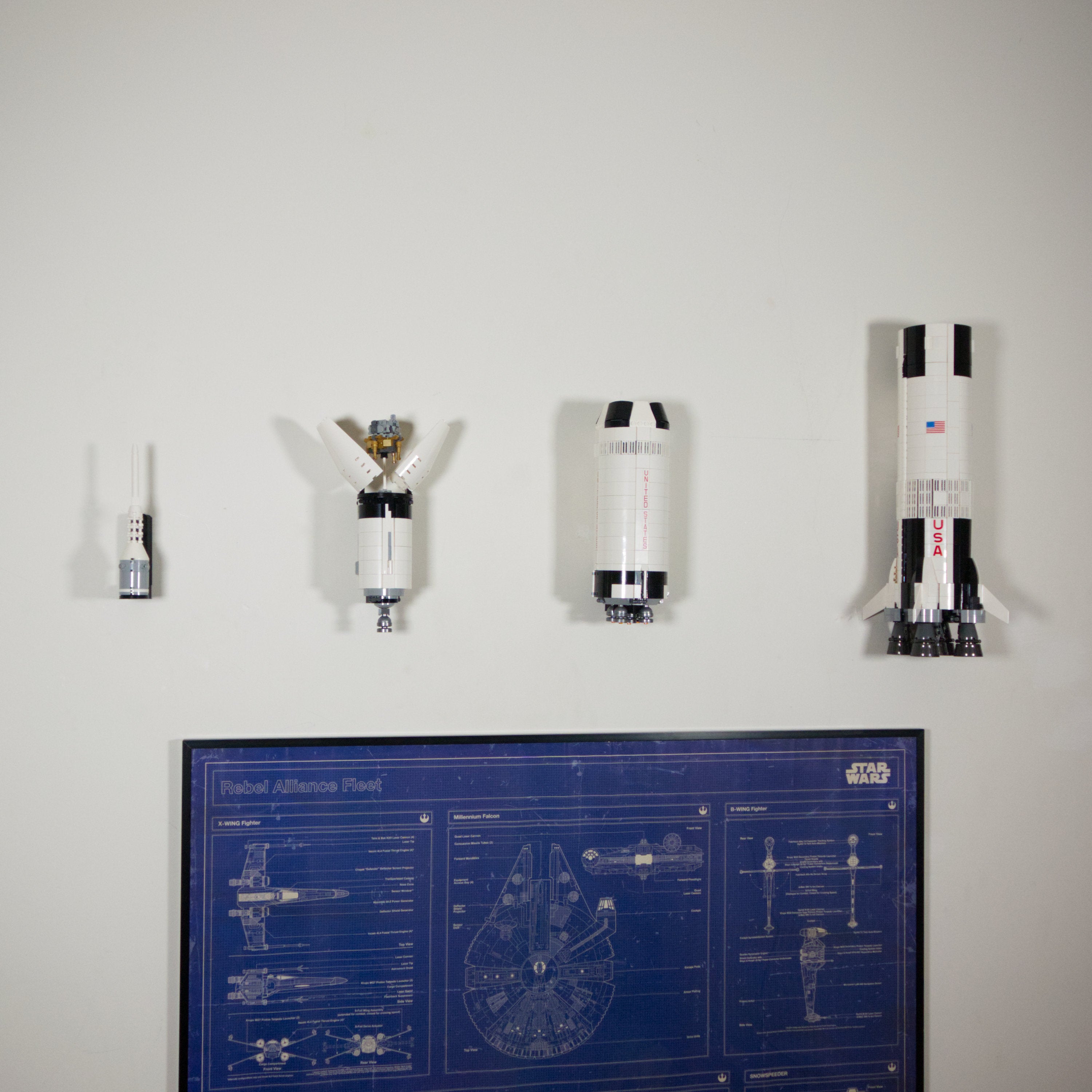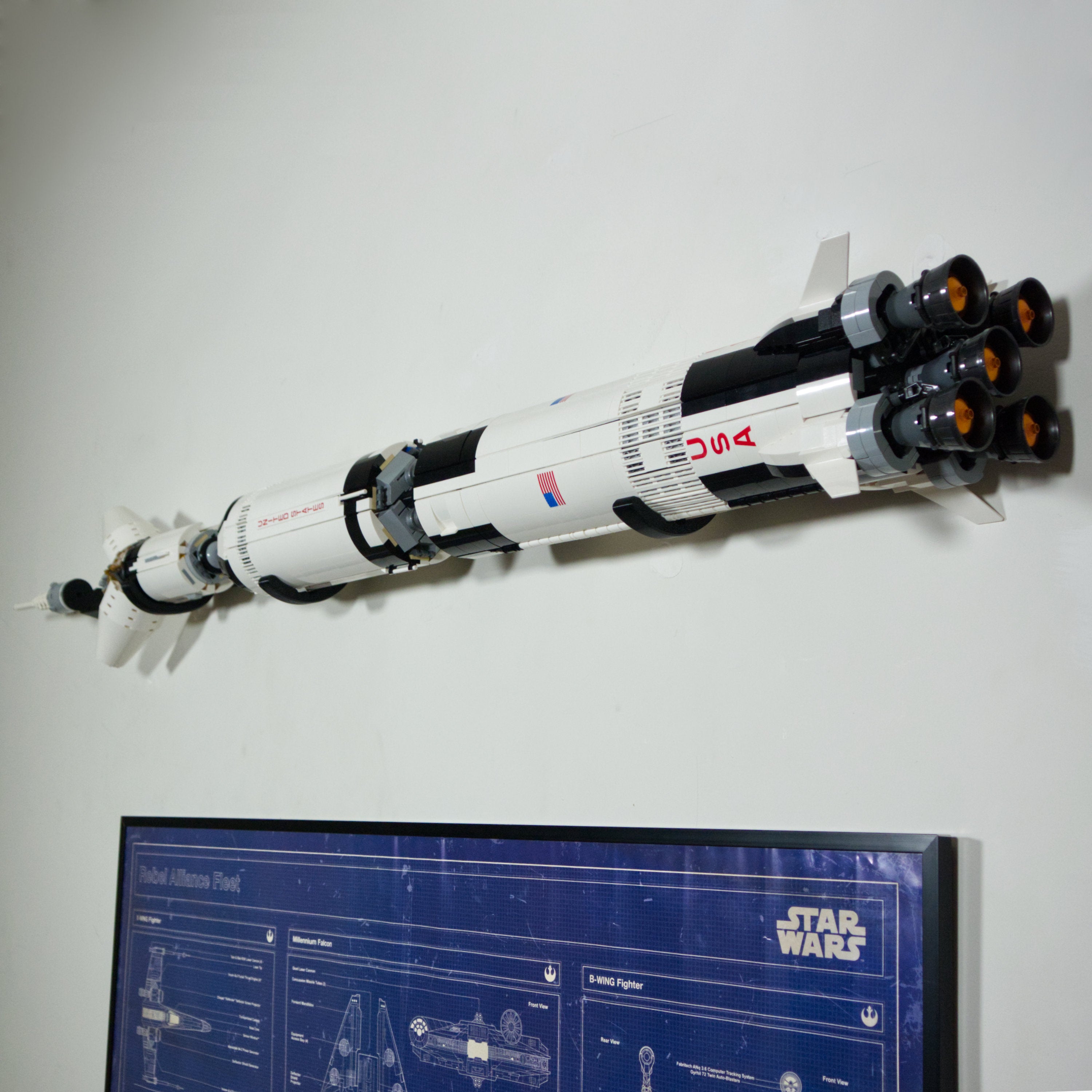 Minimalistyczny wieszak ścienny na rakietę Saturn V