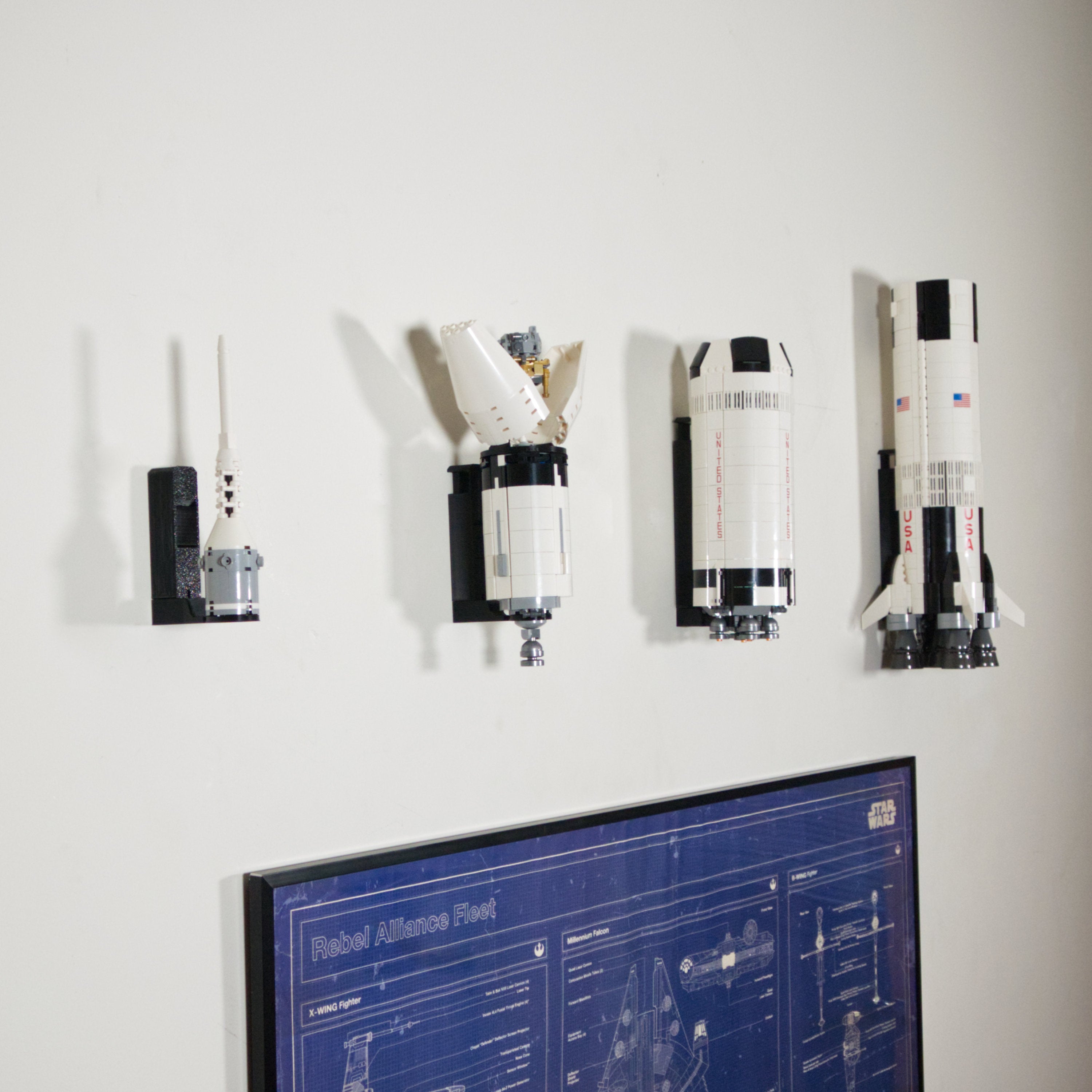 Ten stojak oferuje solidne rozwiązanie do eksponowania Twojej rakiety Saturn V. Projekt inspirowany jest wieżą startową i pozwala na umieszczenie jej pionowo na ścianie lub poziomo na stole. Model można eksponować w całości lub w oddzielnych etapach, co daje elastyczne możliwości dla Twojej kolekcji. Stojak wymaga śrub o średnicy 4 mm do montażu.