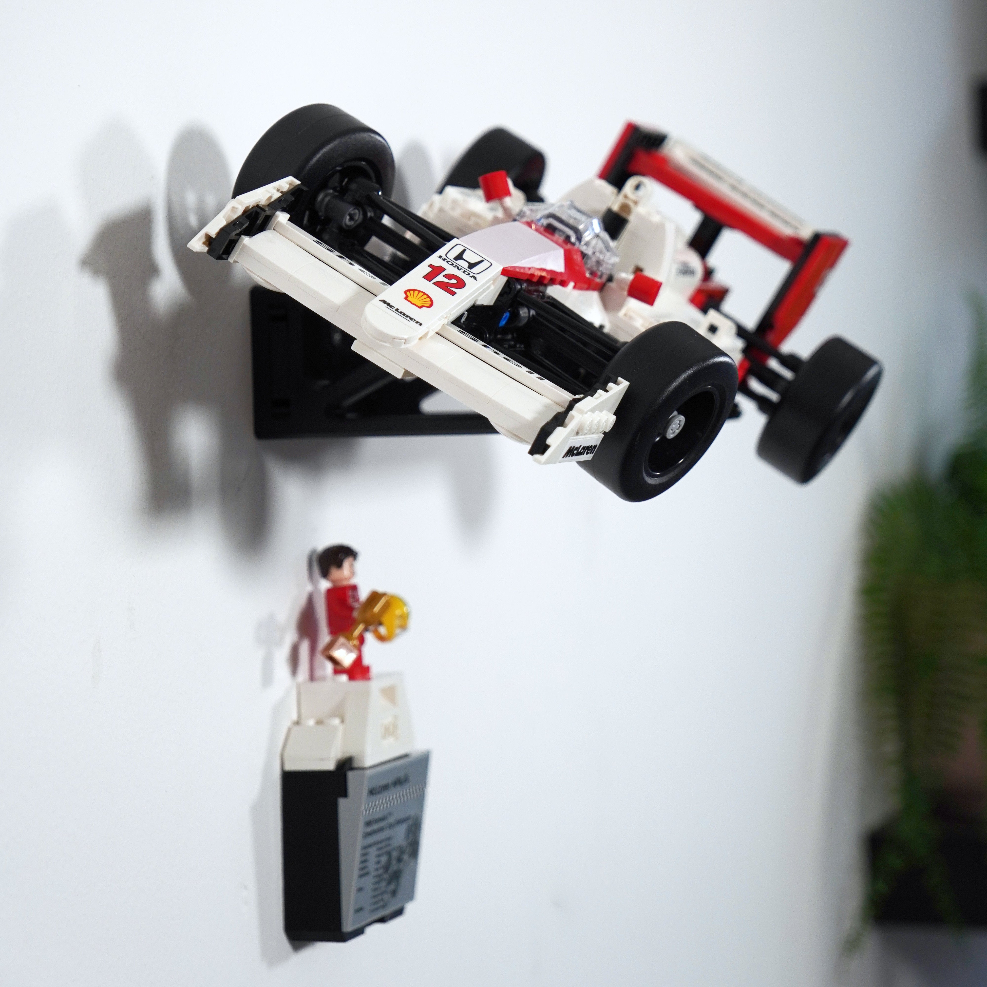 Ten uchwyt ścienny zapewnia eleganckie rozwiązanie do zawieszenia modelu McLaren MP4/4. Konstrukcja umożliwia montaż samochodu skierowanego w lewo lub w prawo. Dołączono również oddzielny blok ekspozycyjny dla minifigurki Senny i tabliczki informacyjnej, dzięki czemu cały zestaw można zaprezentować razem na ścianie.