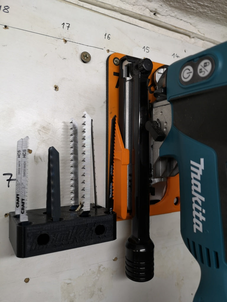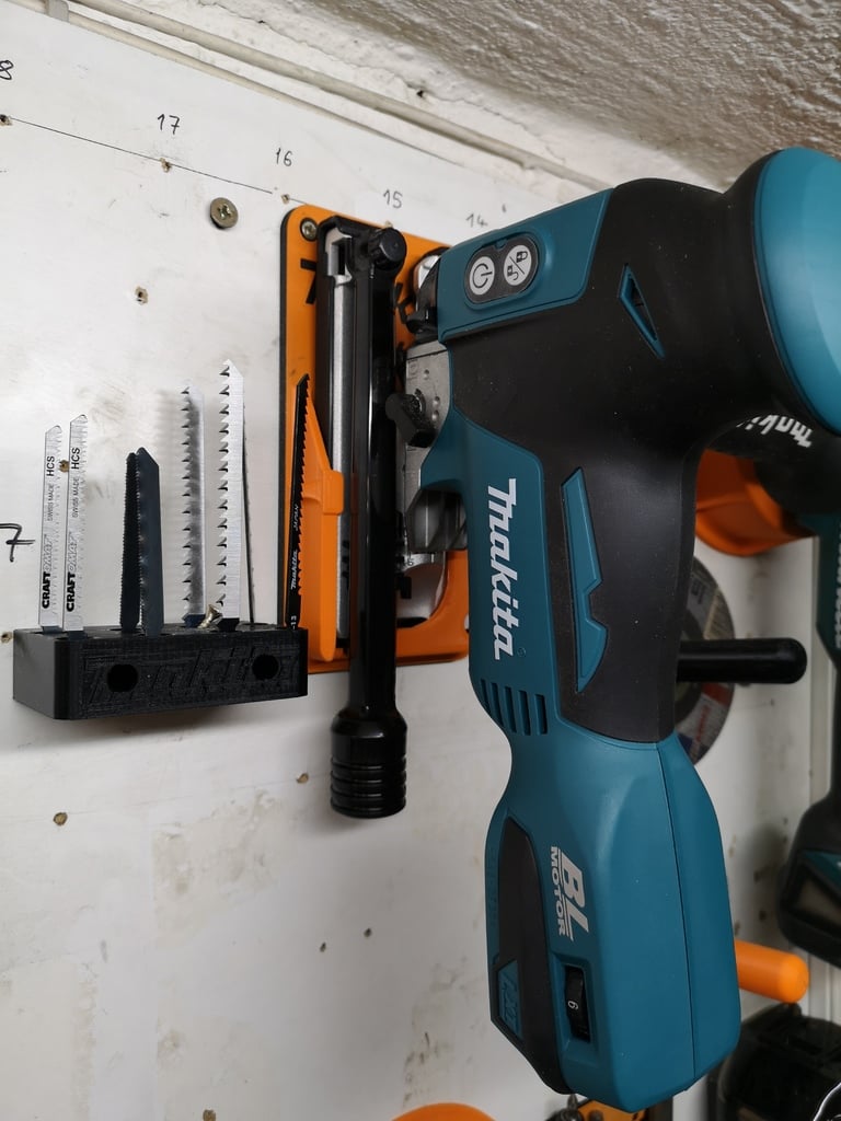 To jest mocowany do ściany uchwyt do wyrzynarki Makita DJV181. Narzędzie można łatwo umieścić w uchwycie, dzięki czemu warsztat, szopa lub pojazd roboczy będą bardziej uporządkowane i zorganizowane. Solidny uchwyt ścienny zapewnia bezpieczne przechowywanie i łatwy dostęp do wyrzynarki Makita w razie potrzeby.