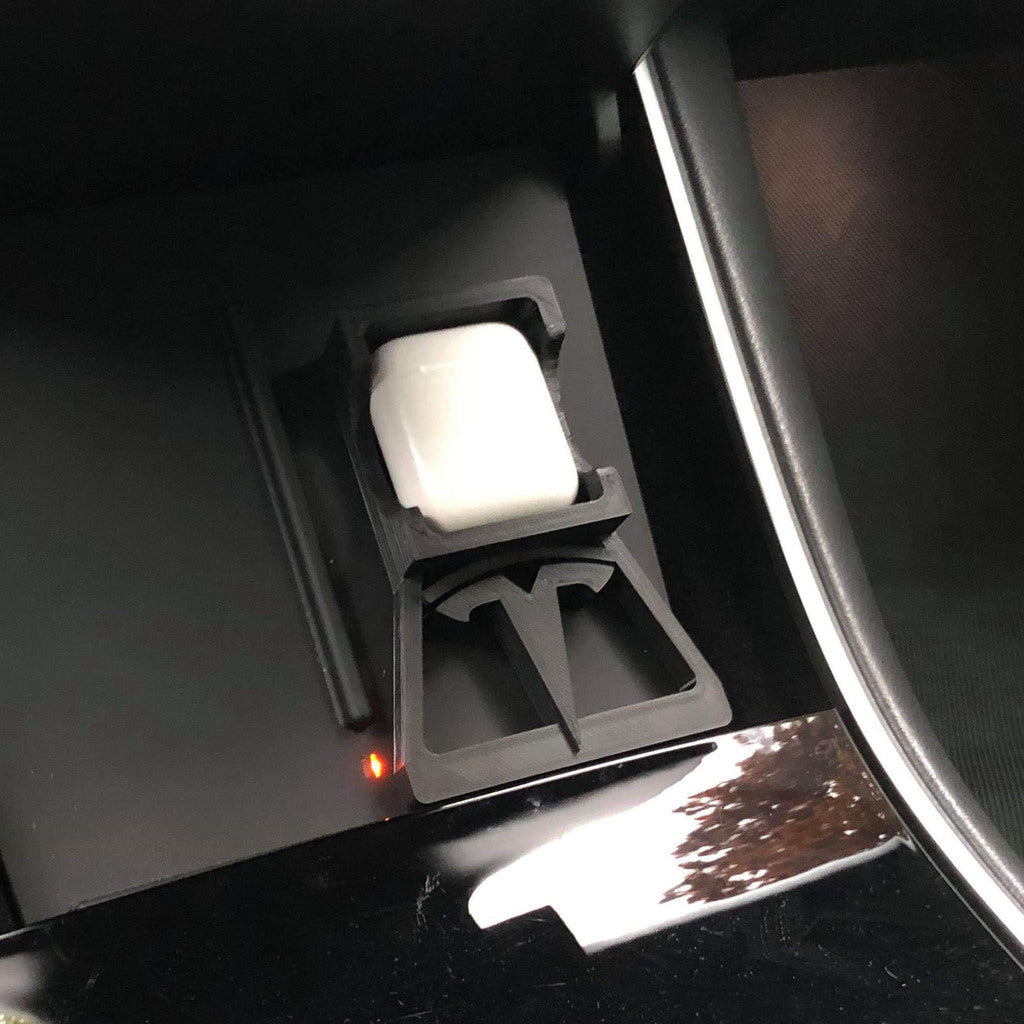 Adapter umożliwiający łatwe ładowanie słuchawek Apple Airpods w bezprzewodowej ładowarce wspomagającej Tesla